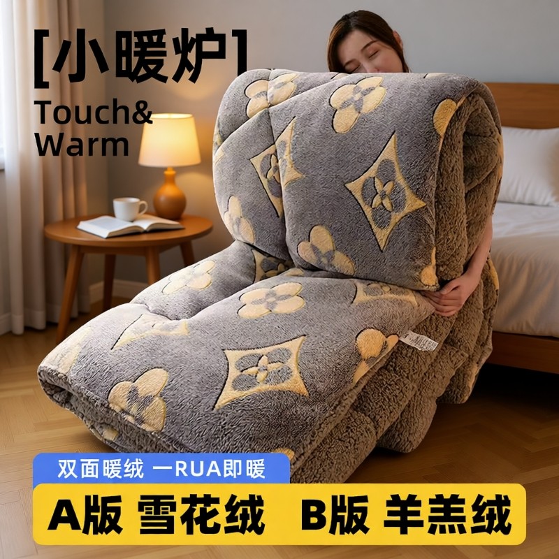 保暖冬季双面绒冬天加厚棉被芯雪花羊羔绒冬被牛奶绒被子宿舍棉被