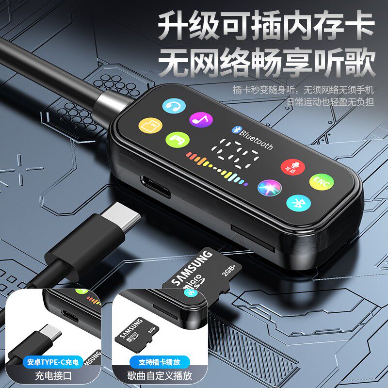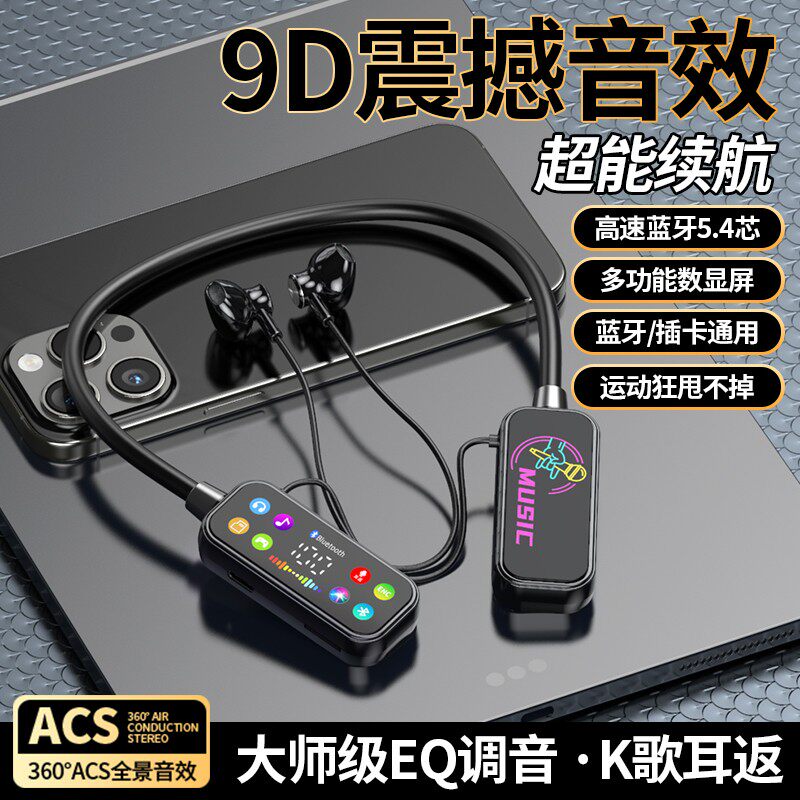 无线运动挂脖蓝牙耳机K歌耳返降噪超长续航可插卡通用