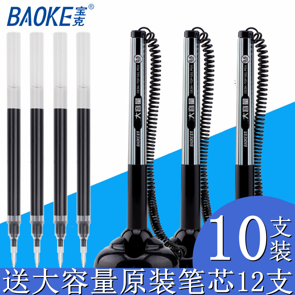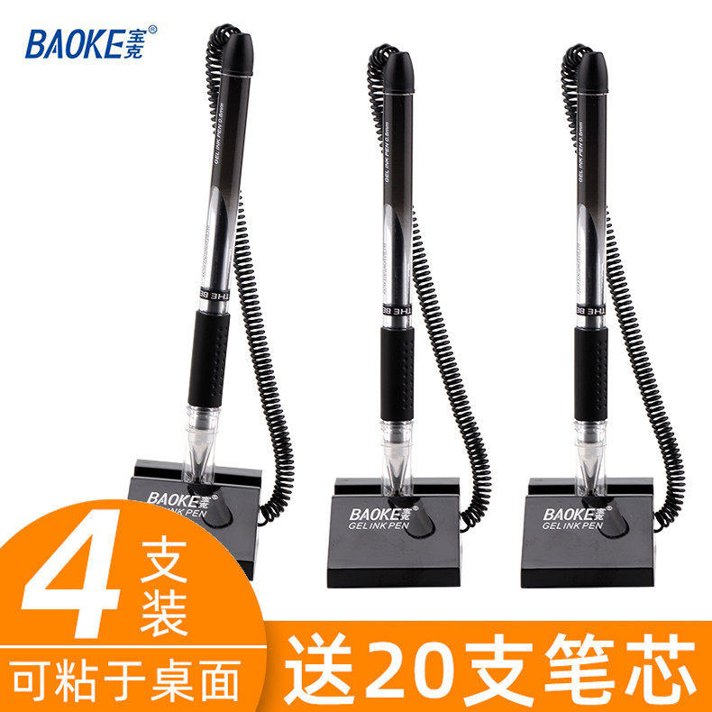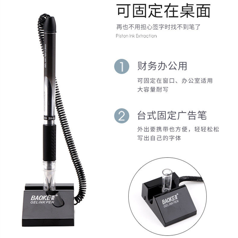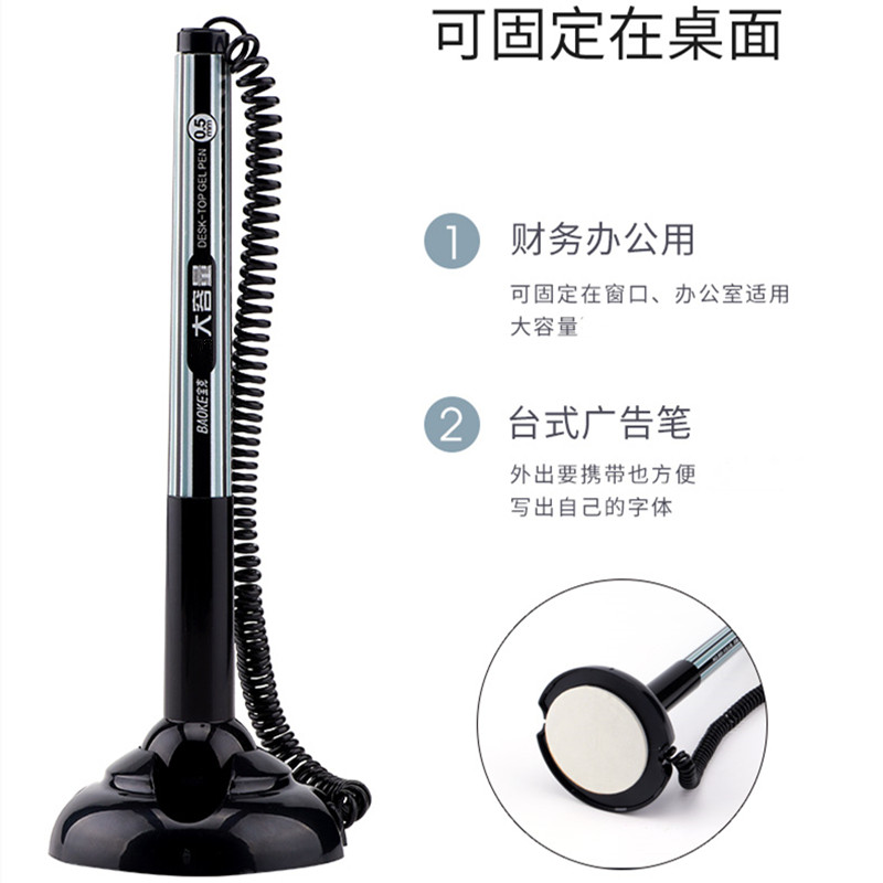 宝克台笔固定签字笔带绳吧台笔银行前台笔中性笔可粘贴商务碳素笔0.5mm黑色台笔创意笔防丢笔柜台粘桌笔水笔