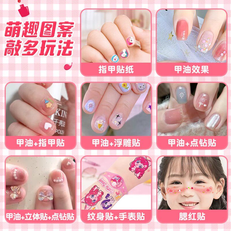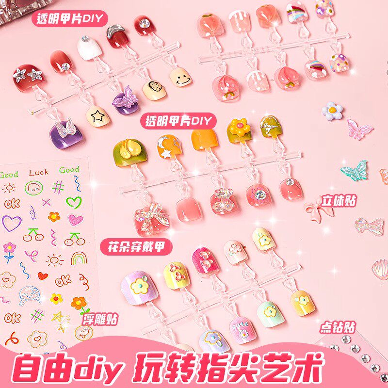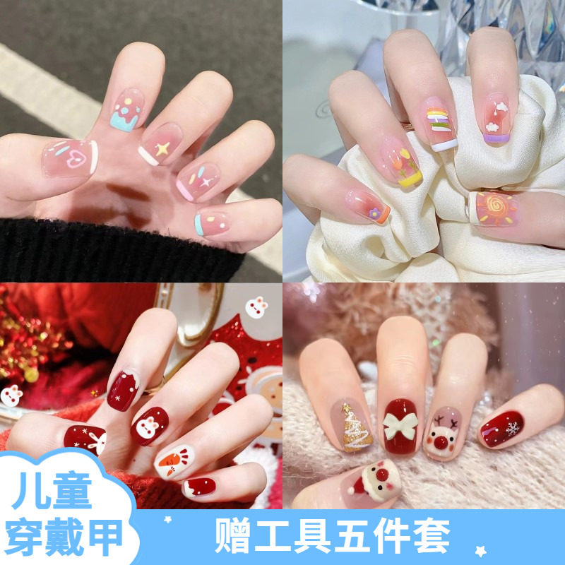 儿童美甲套装可爱穿戴甲卡通可爱3D立体指甲贴片纹身贴全套假片炫彩指甲油小朋友装扮女孩防水持久美甲宝宝