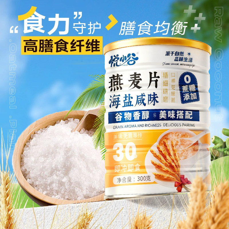 海盐咸味燕麦片营养早餐官方旗舰店正品饱腹代餐冲泡健康高钙罐装