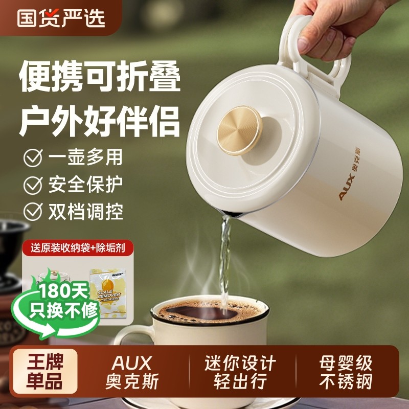 奥克斯全钢折叠水壶旅行出差便携式烧水壶不锈钢电热水杯迷你家用