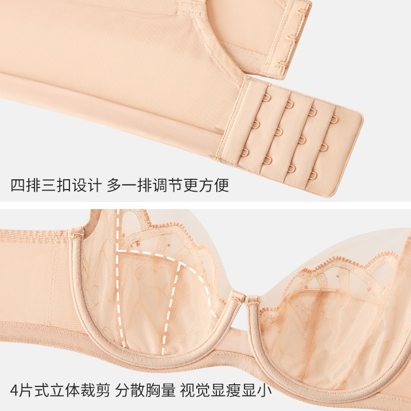 桑扶兰内衣女大胸显小2025夏超薄性感蕾丝聚拢防下垂大码胸罩文胸