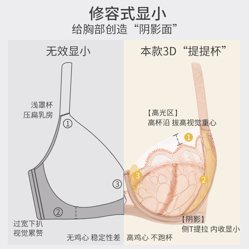 润微提拉女王内衣女大胸显小无痕大码调整防下垂收副乳粉底液文胸