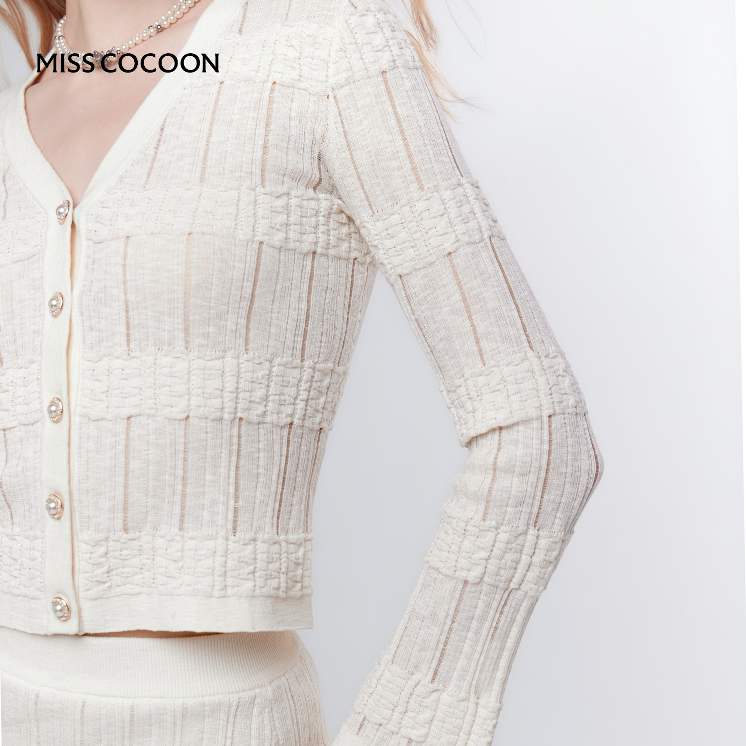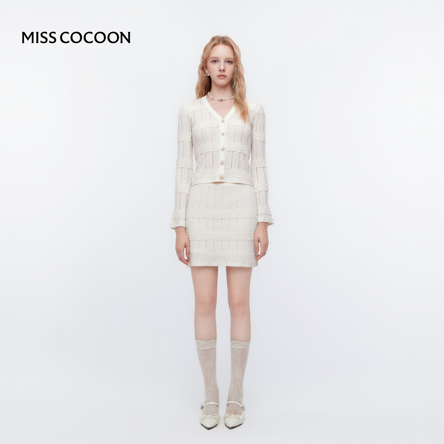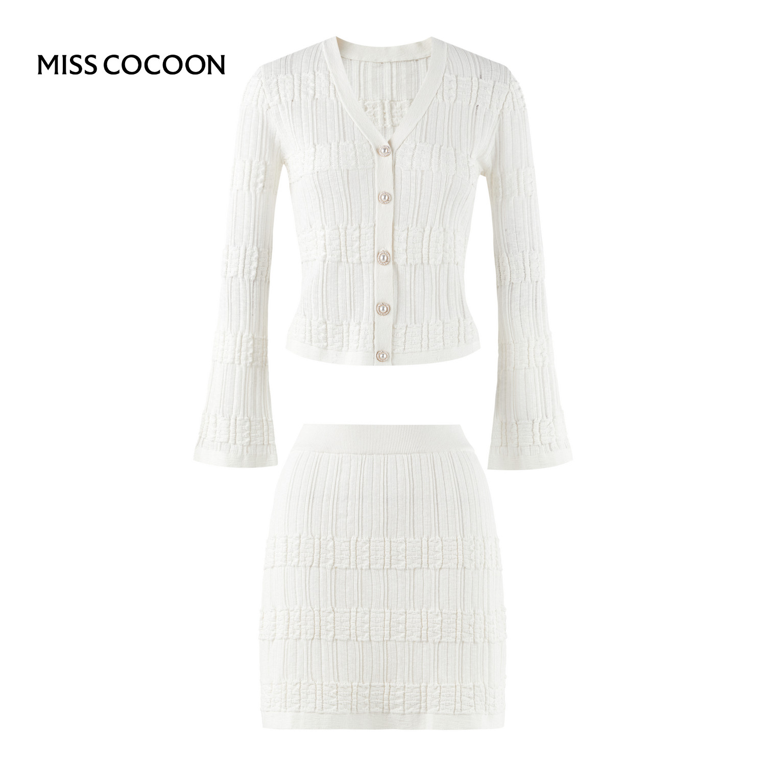MISSCOCOON可可尼白色V领针织套装裙女款2025秋季新款开衫两件套