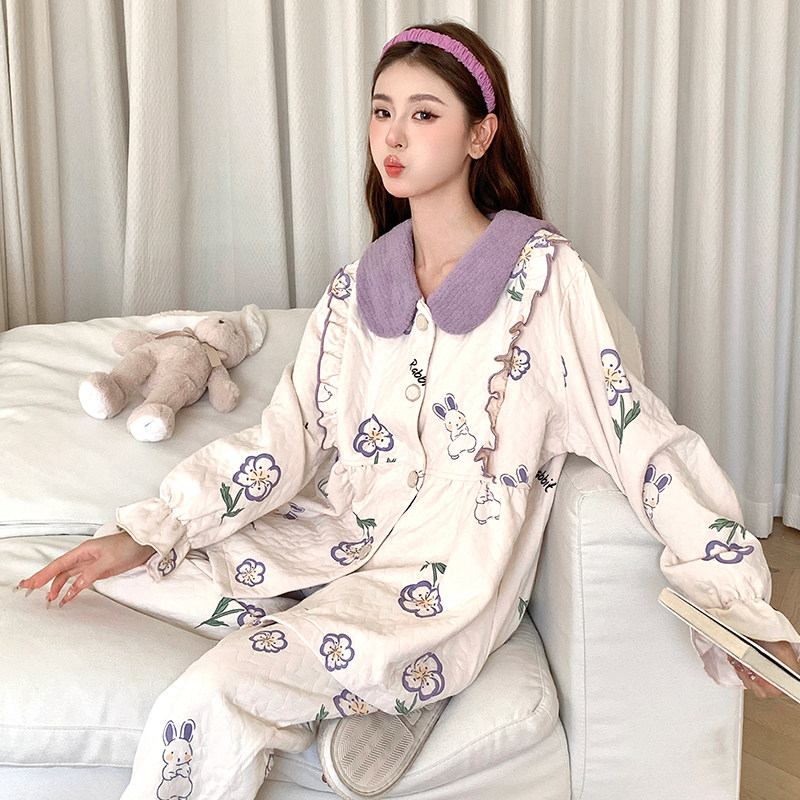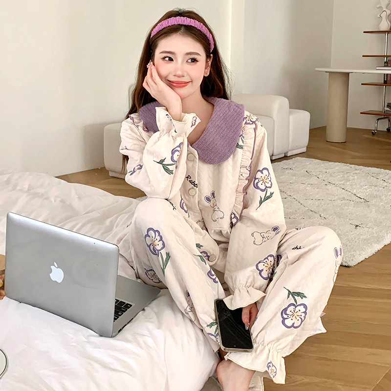 婧麒空气棉月子服秋冬产后加厚孕妇睡衣哺乳产妇待产喂奶家居服女