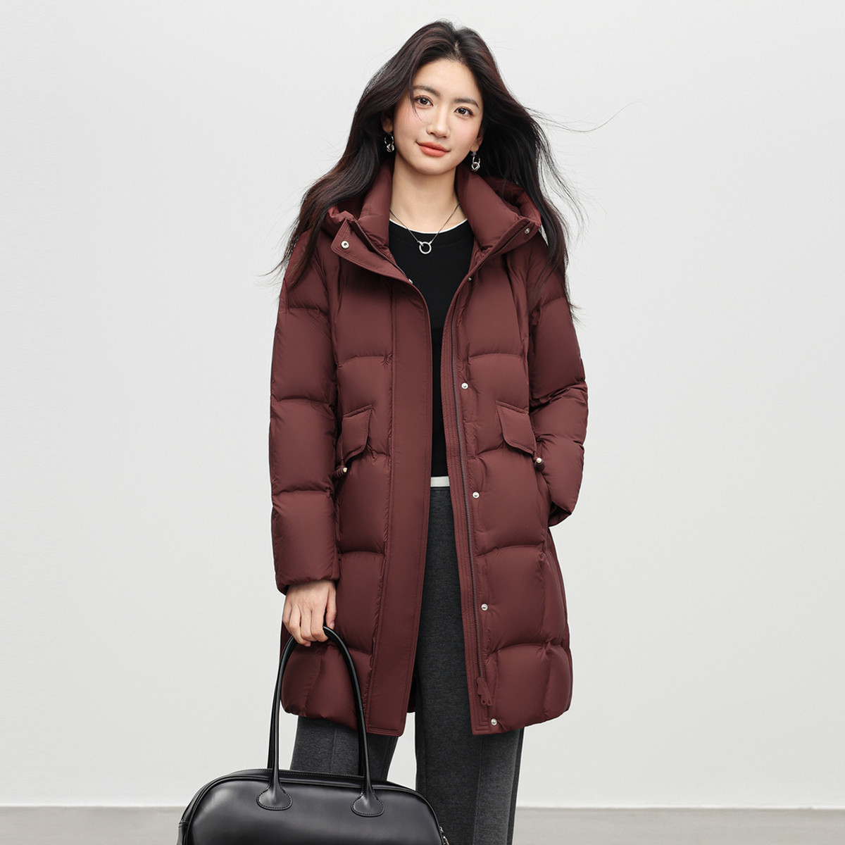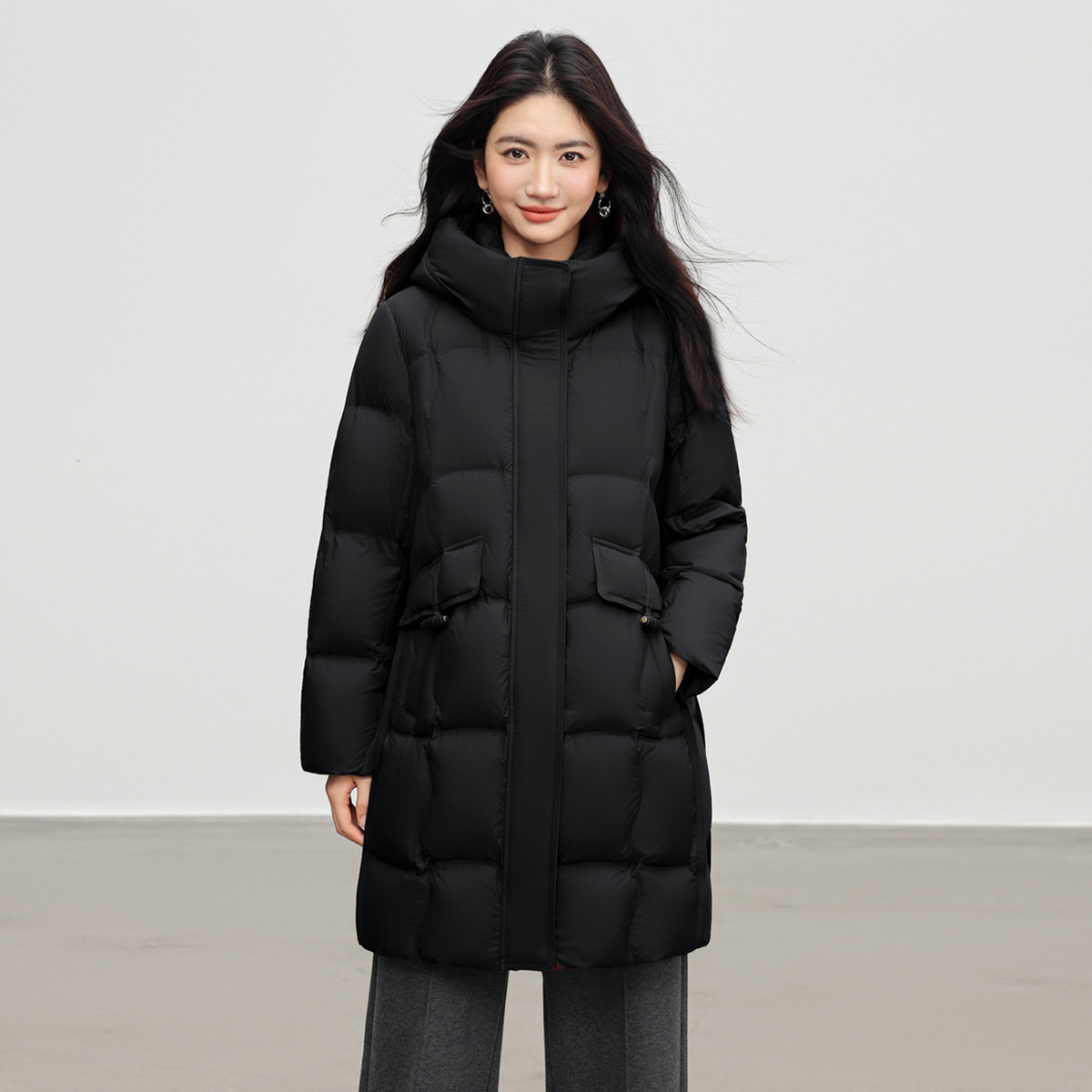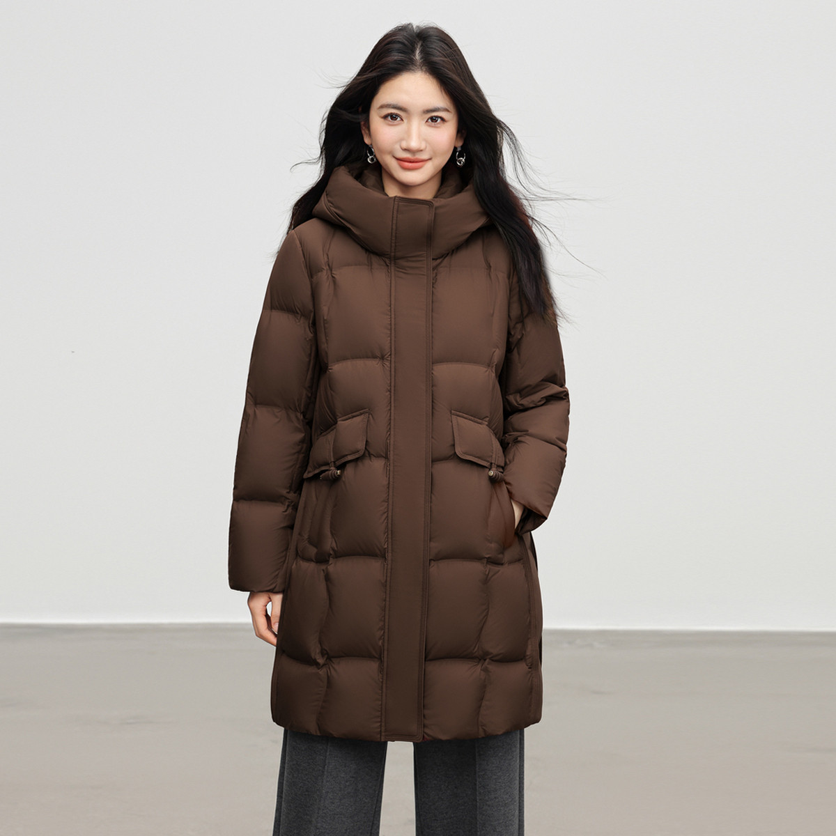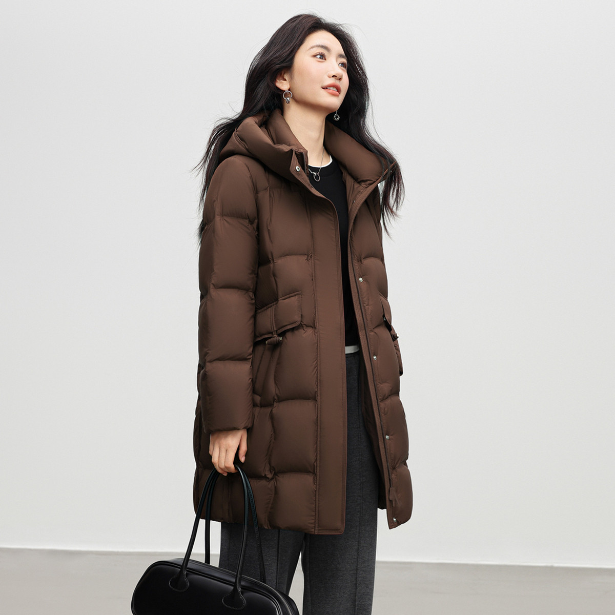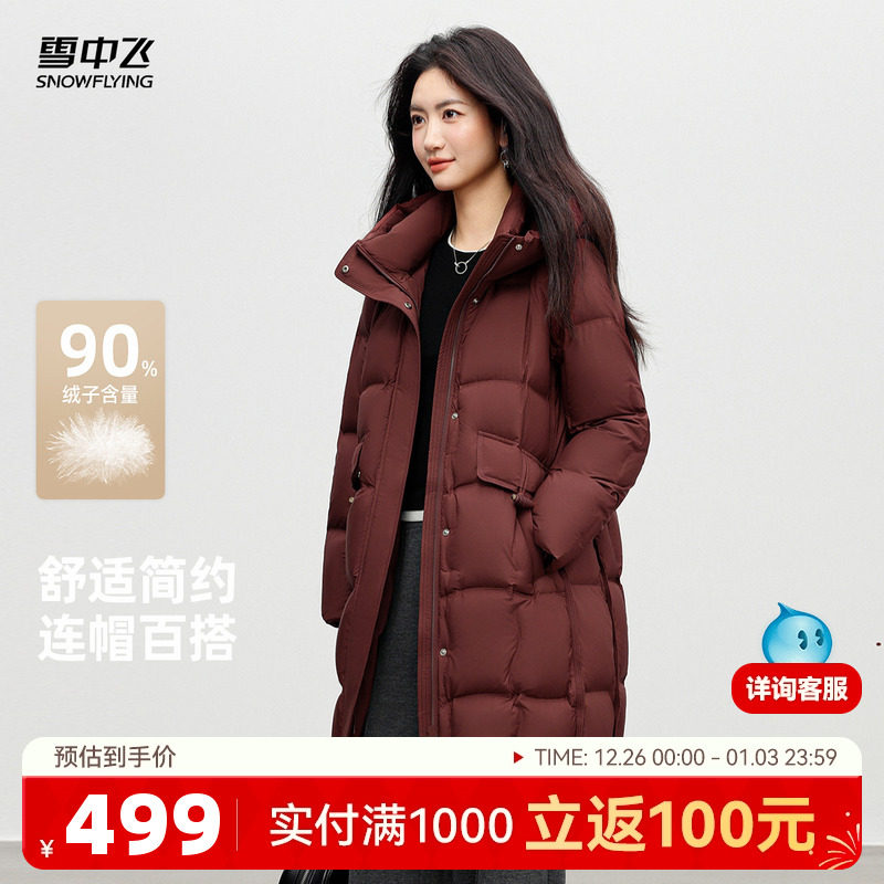 雪中飞2025冬新款羽绒服女士中长款精致妈妈连帽时尚气质保暖外套