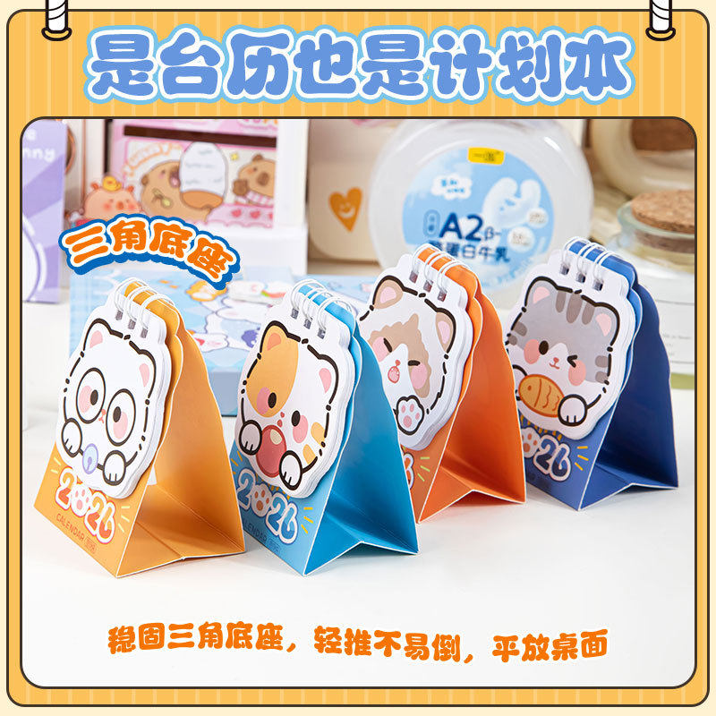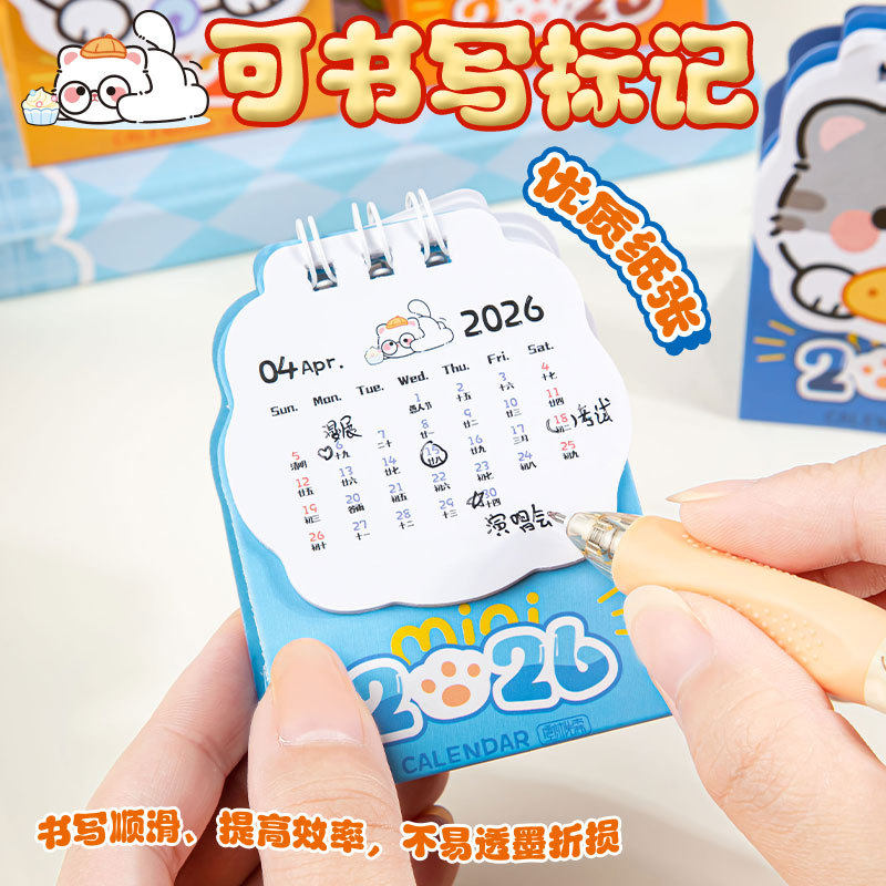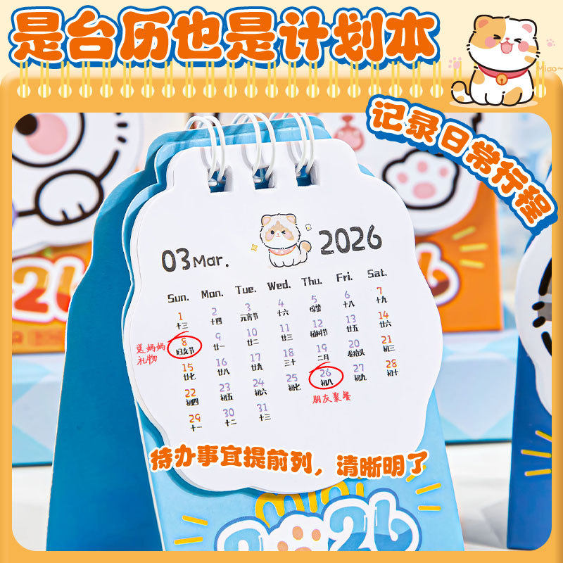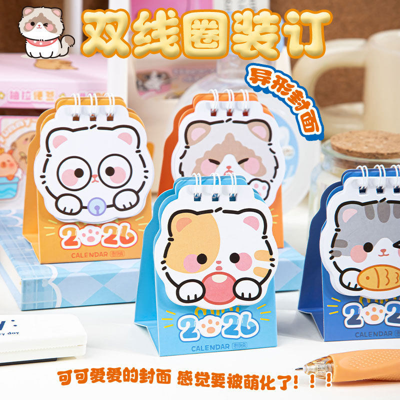 2026年卡通猫咪小台历异形可爱萌桌面日历计划本便携式台历小摆件