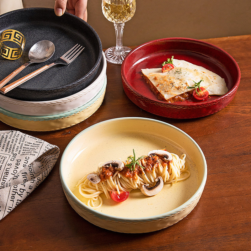 创意ins风高级感荷叶边陶瓷盘意面盘深盘西餐盘水果沙拉碗酸奶碗