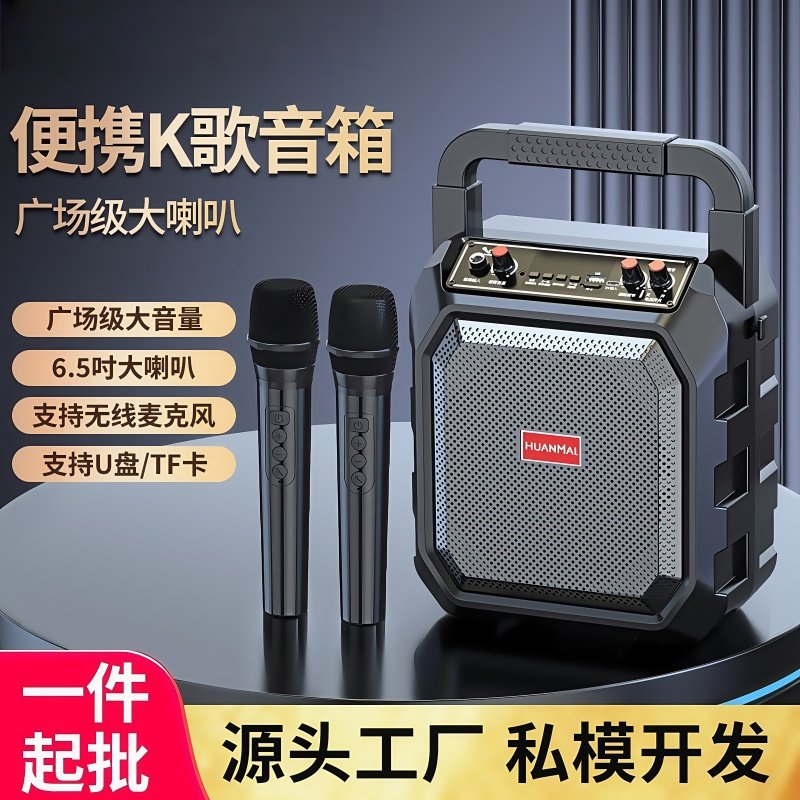 广场舞音响户外蓝牙音箱K歌小型手提便携式移动一体双话筒麦克风
