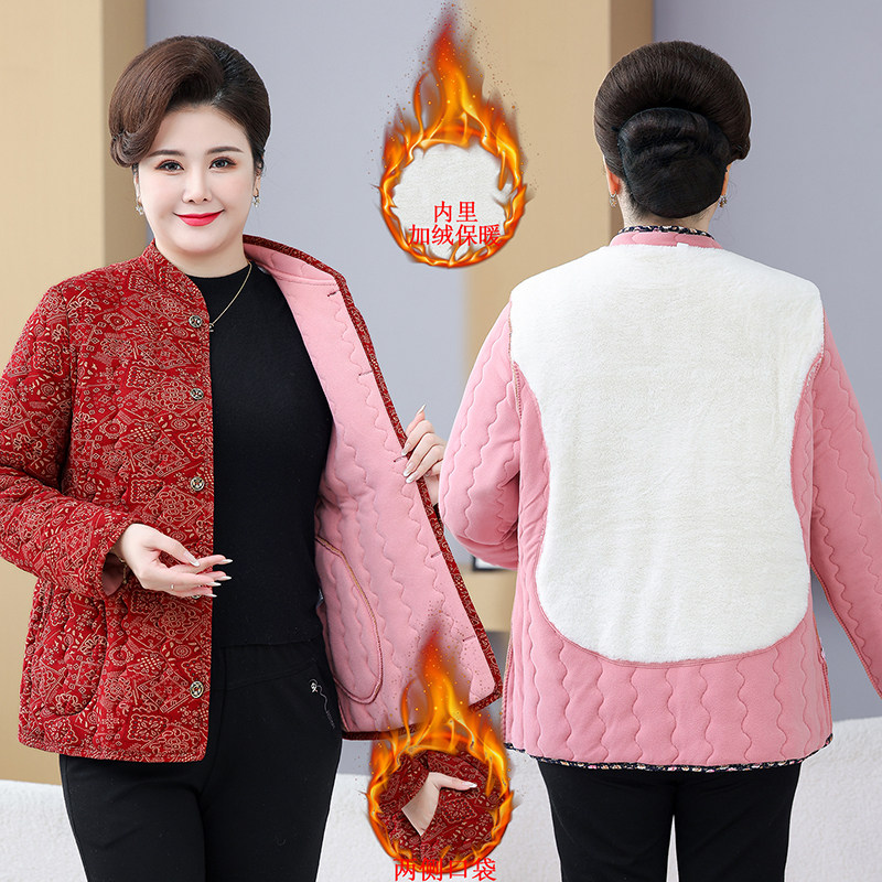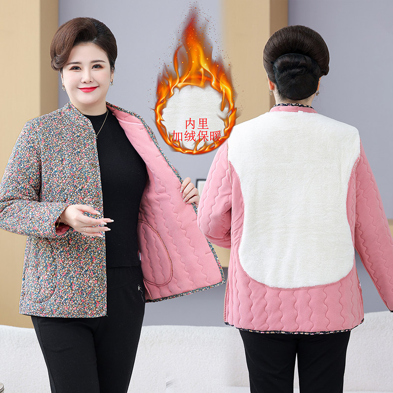 妈妈秋冬装德绒保暖棉衣短款加厚内胆中老年人女薄款小棉袄可外穿