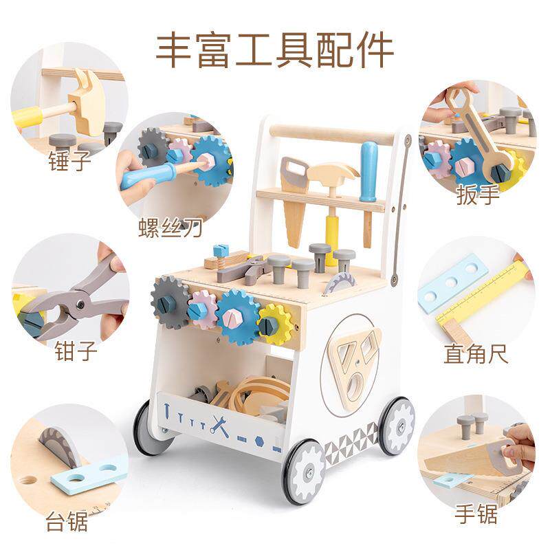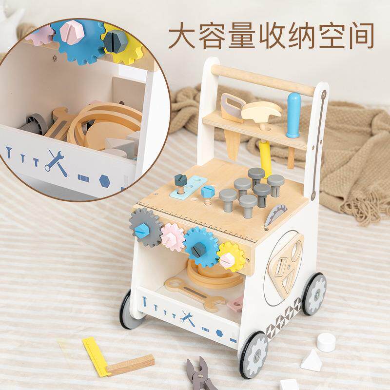 婴幼儿童手推学步车宝宝学走路助步益智玩具木制多功能螺母工具车