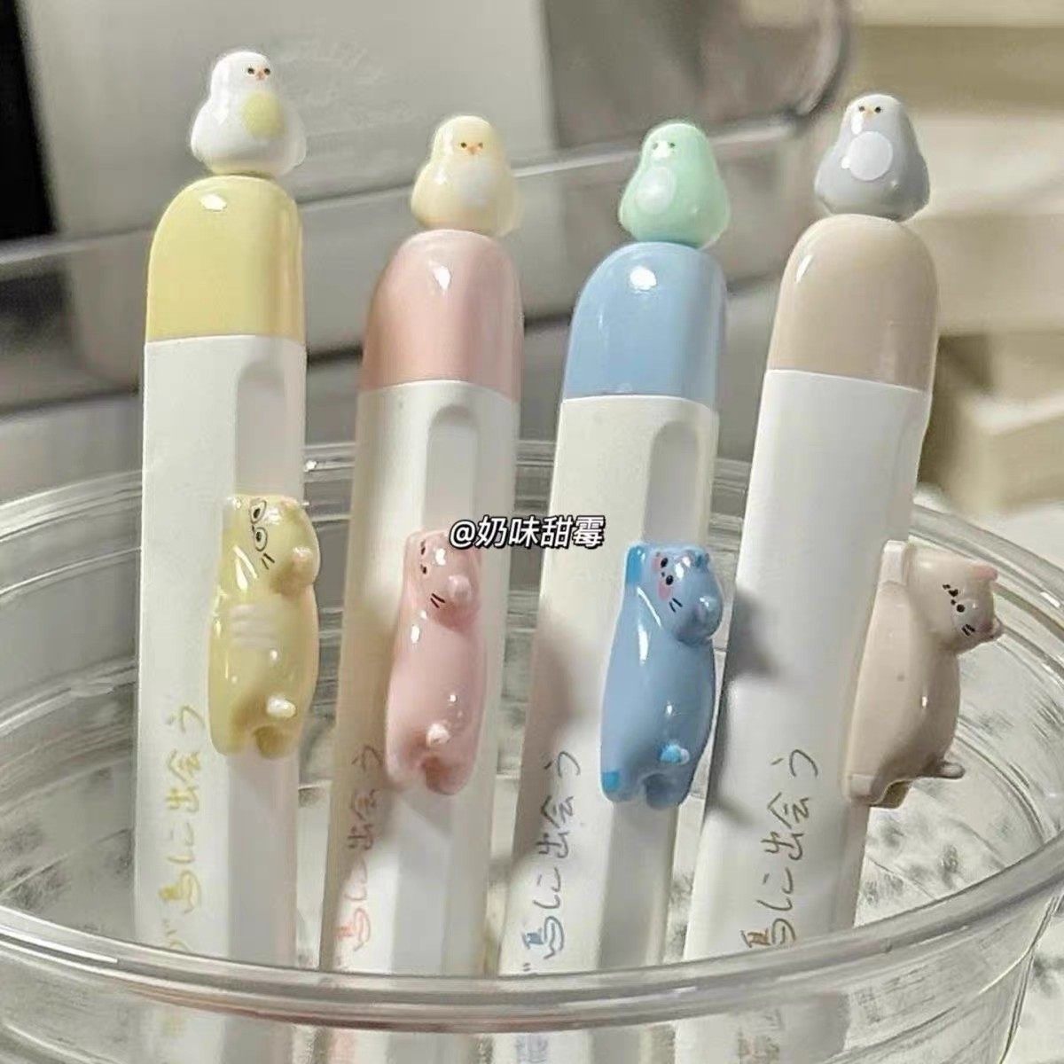 凡物象猫咪创意磁吸小鸟按动笔ins高颜值刷题笔cs头速干顺滑学生中性笔