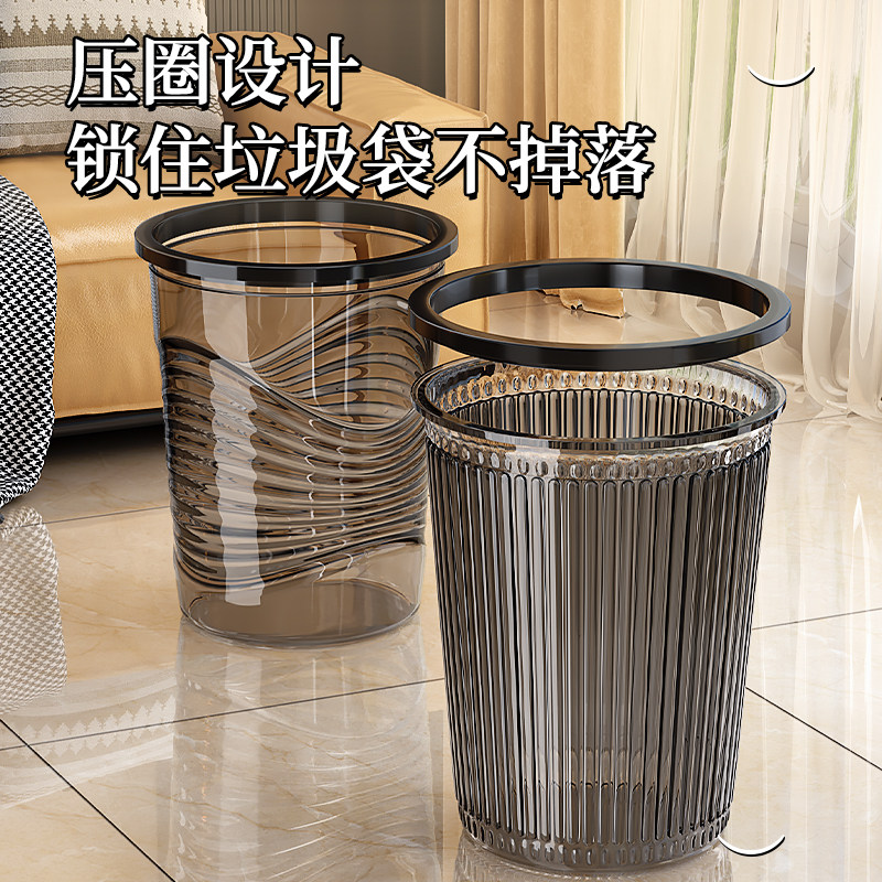 轻奢透明垃圾桶家用2025新款高颜值客厅厨房大容量卫生间厕所纸篓