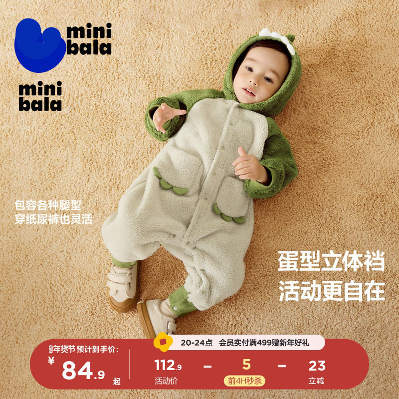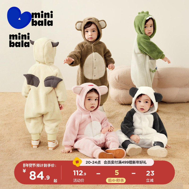 迷你巴拉巴拉婴儿连体衣外出加厚珊瑚绒爬服毛绒衣服加绒保暖萌趣