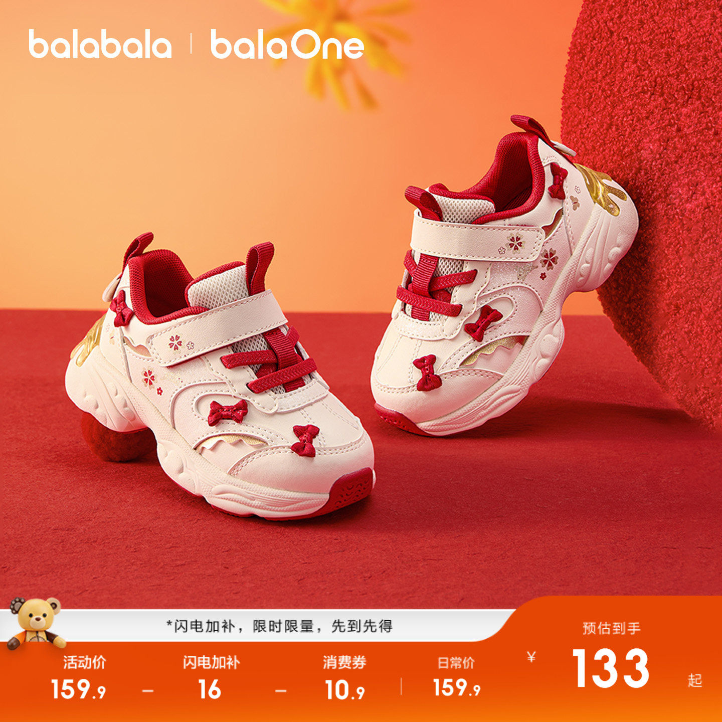 巴拉巴拉童鞋女童学步鞋运动鞋秋冬2026新蝴蝶结新年鞋子潮老爹鞋