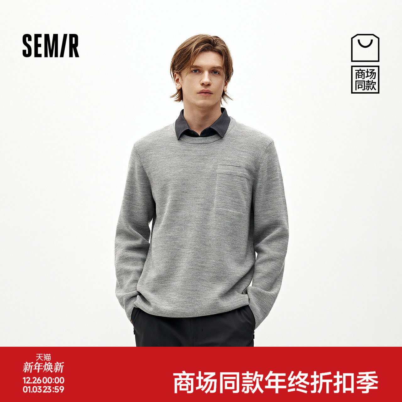森马毛衫男冬季满版提花针织衫撞色毛衣宽松套头衫百搭提花潮-TK