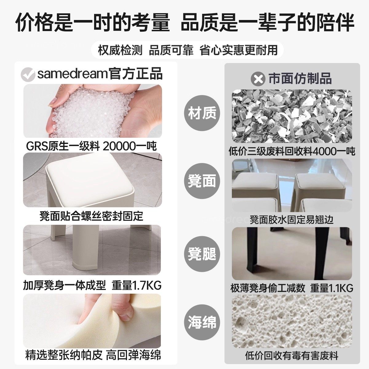 茶花凳子家用塑料凳耐用舒适久坐板凳客厅餐桌椅子加厚现代书桌