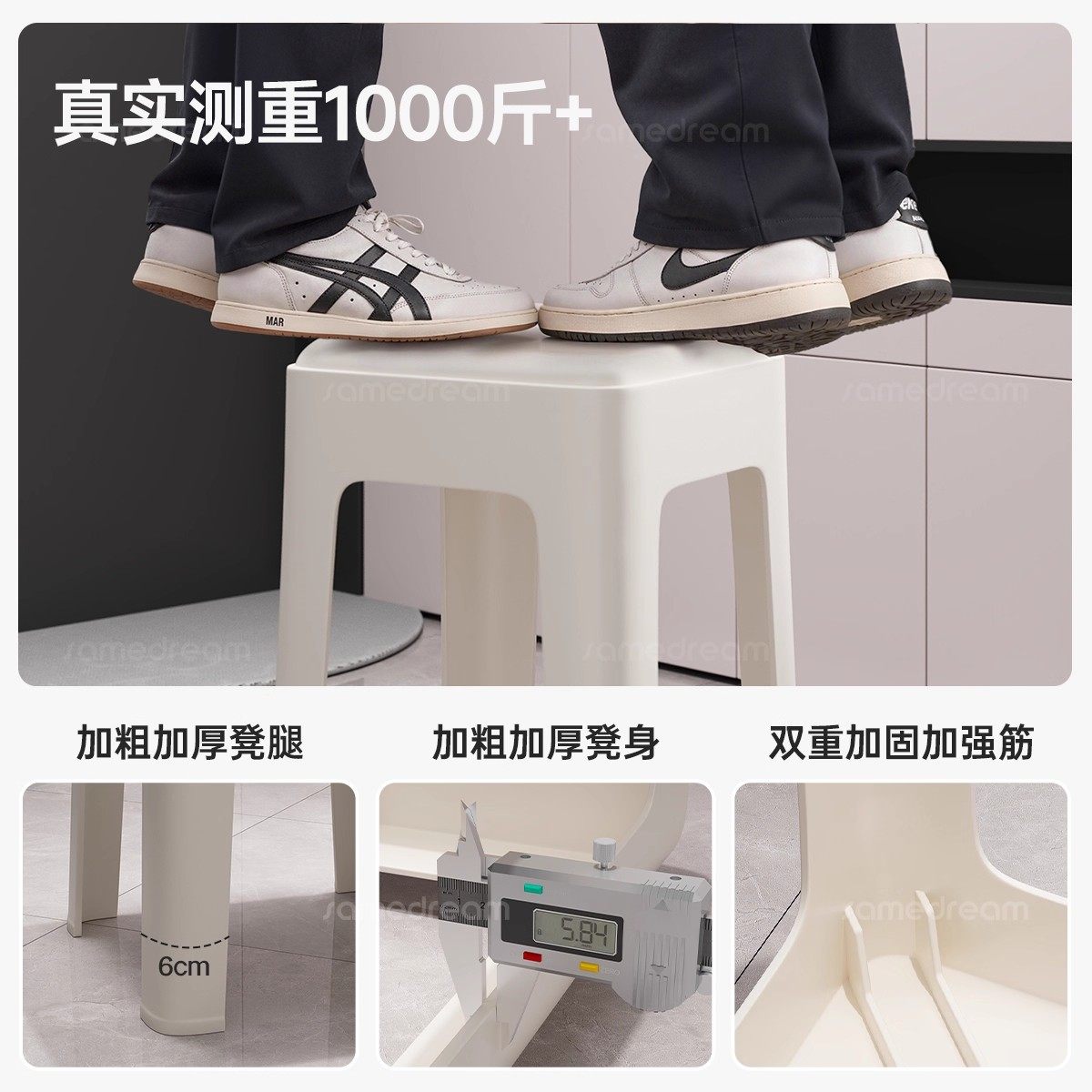 塑料凳子家用塑料椅子加厚北欧款式防滑耐用可叠放椅子方凳厚实款