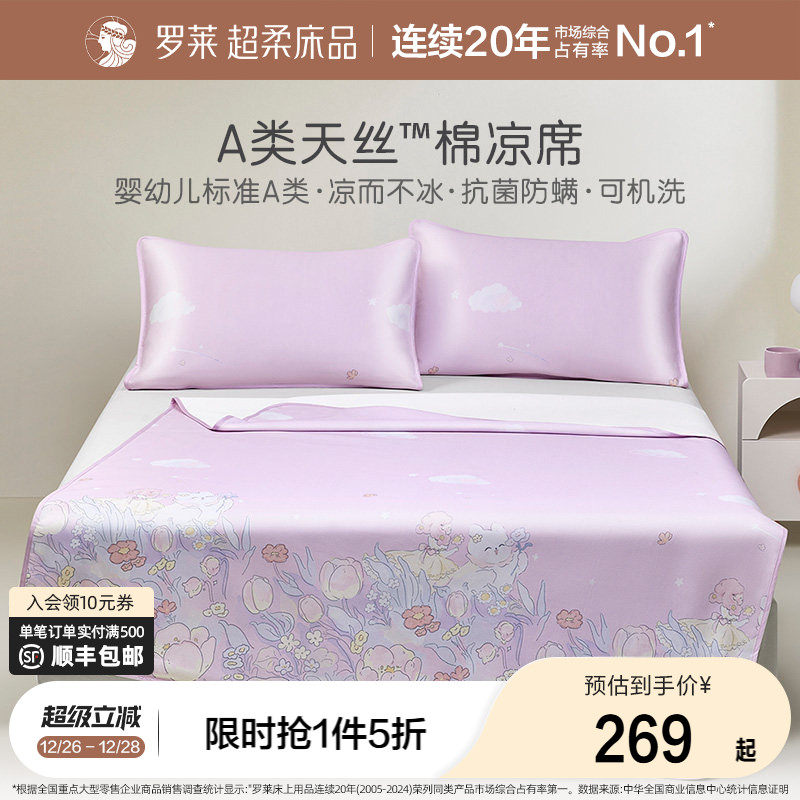 罗莱家纺儿童a类2025新款夏天棉柔凉席三件套可机洗床笠款空调席