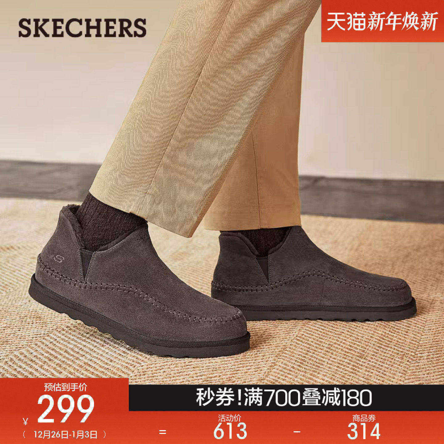 斯凯奇闪穿秋冬季新款男鞋休闲鞋保暖加绒雪地靴商务一脚蹬二棉鞋