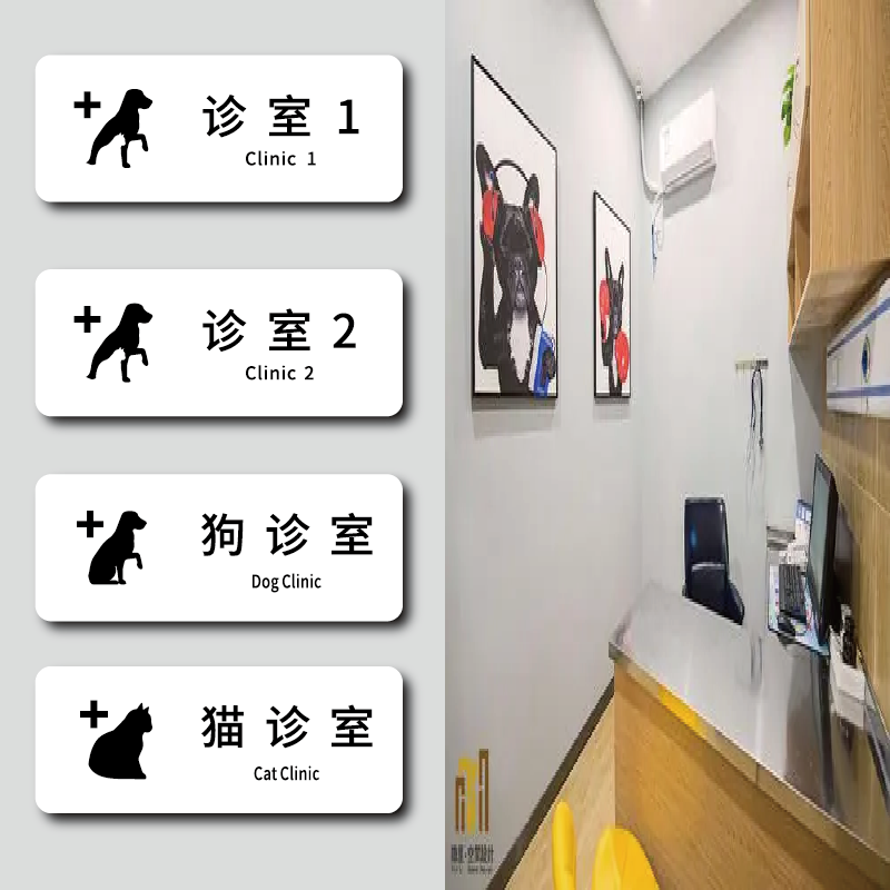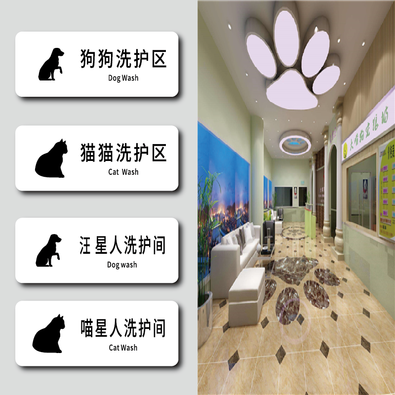 宠物店门牌定制作创意个性美容SPA室狗狗猫咪洗护室寄养区域提示牌动物医院诊室住院部标识撸猫区指示牌