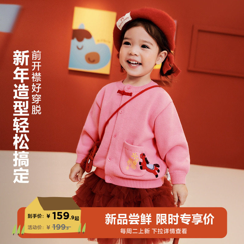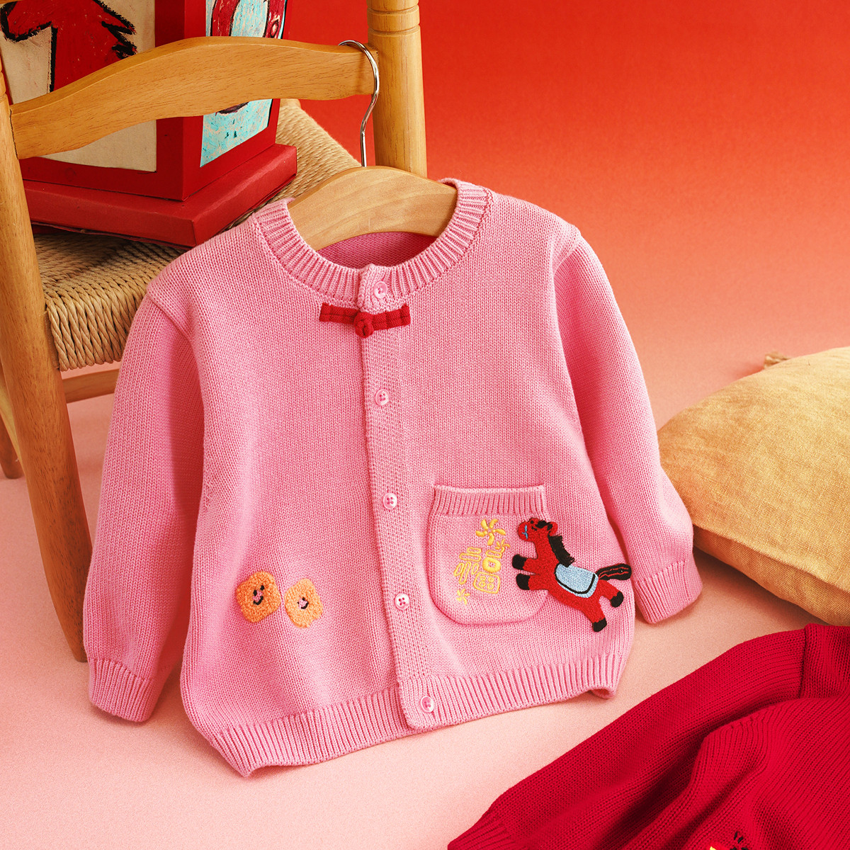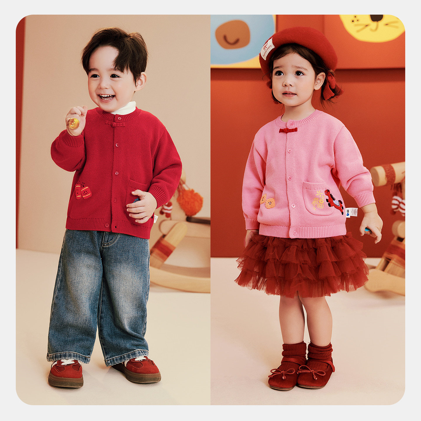 【密扇联名】迷你巴拉男女童宝宝毛衣冬新中式红色新年拜年服开衫