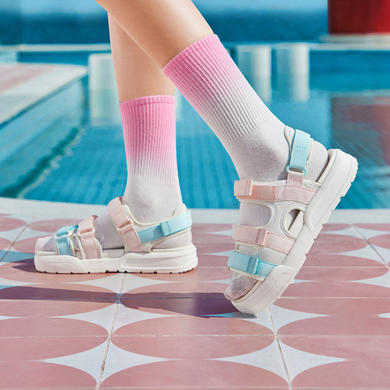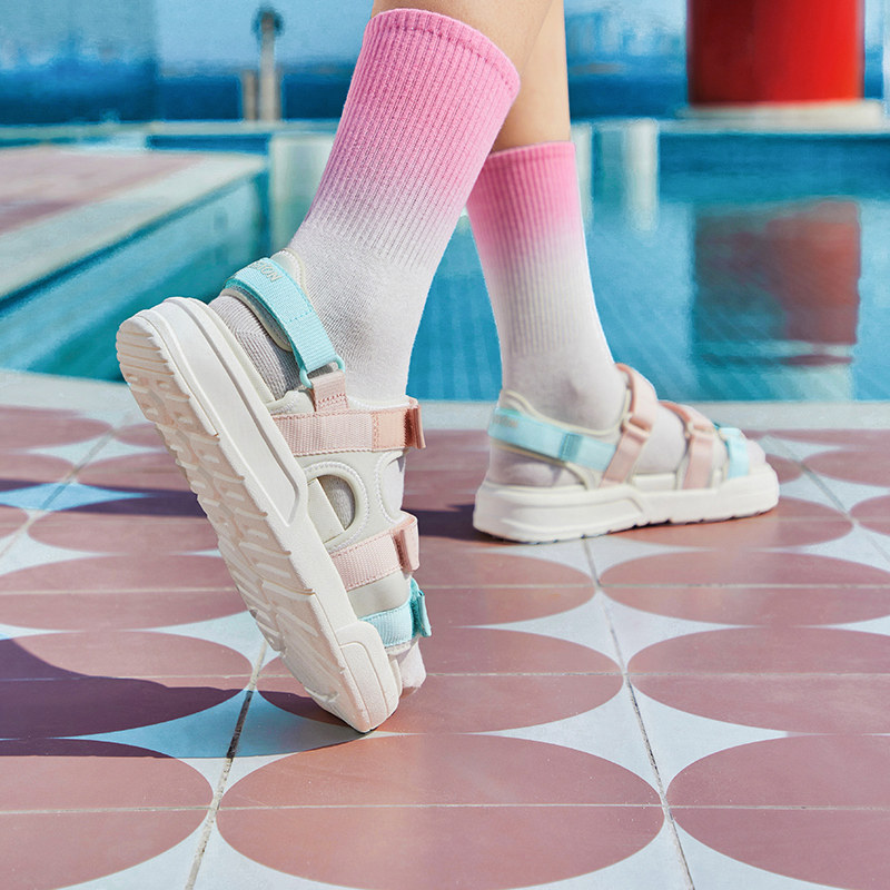 特步冬季凉鞋女正品沙滩鞋厚底增高魔术贴休闲鞋户外运动凉拖鞋男