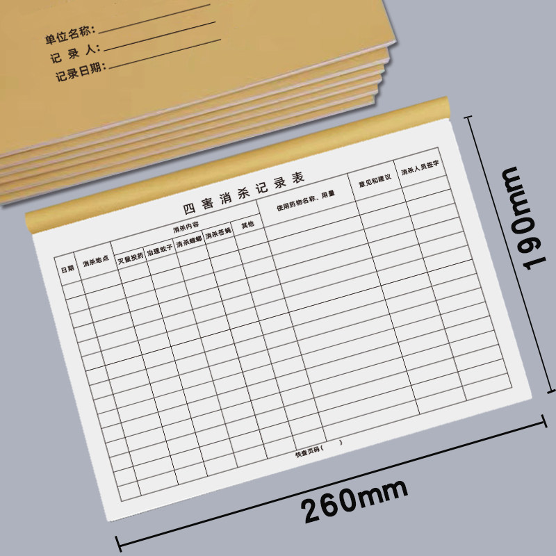 四害消杀记录簿餐饮厨房酒店卫生间消毒记录本餐馆商铺仓库药店门诊苍蝇老鼠蟑螂蚊子蛇杀菌消毒除害台账定制