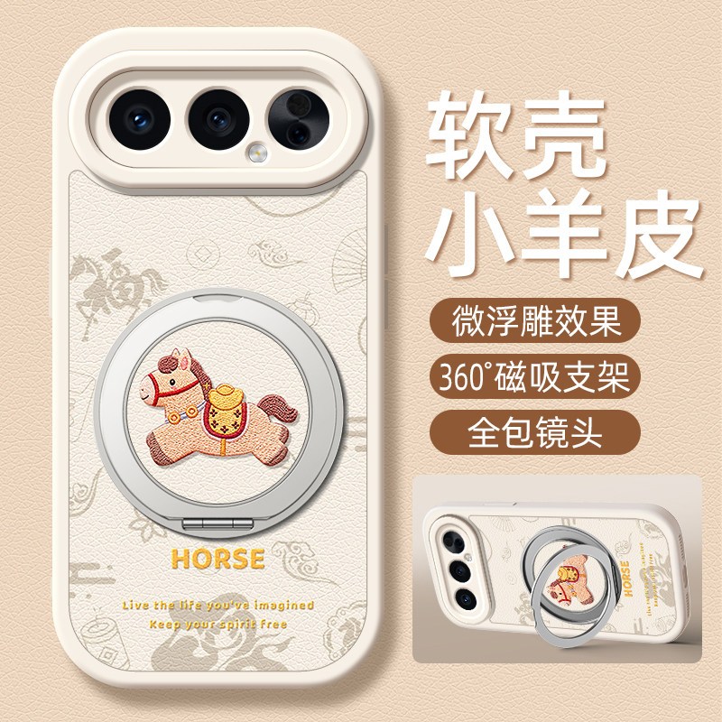 新年适用荣耀500手机壳400马年300/200/100/50pro小羊皮v40轻奢版v30/v20/30青春版20s卡通磁吸支架pro+女款