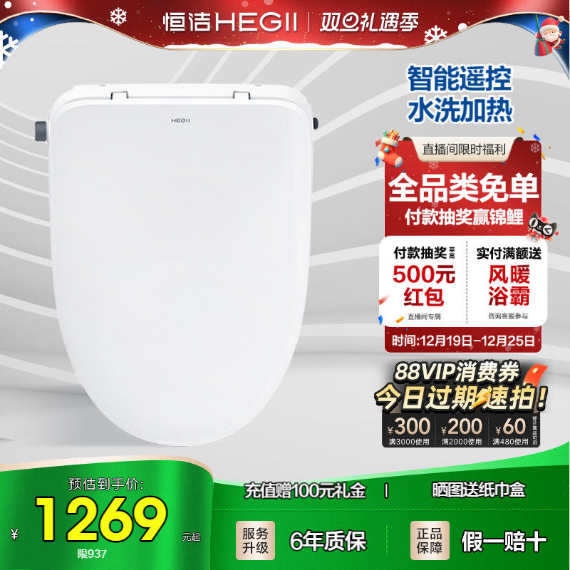 恒洁智能马桶盖板坐便器马桶盖板家用加热遥控小户型