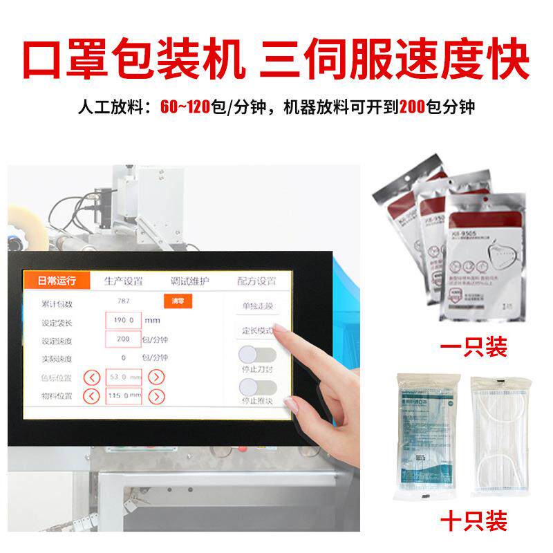 全自动三伺服儿童口罩包装机 n95口罩枕式机 一次性口罩包装机