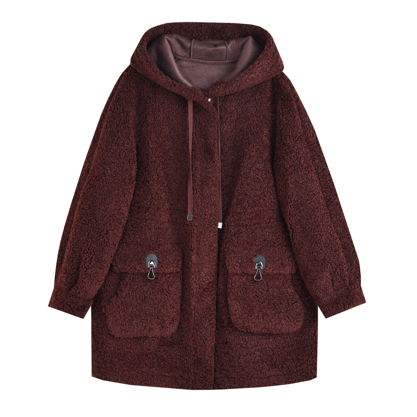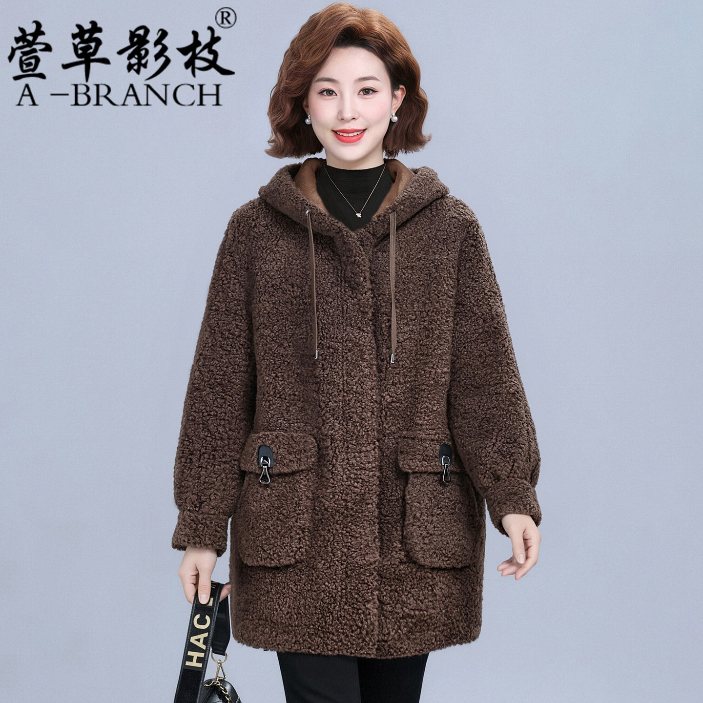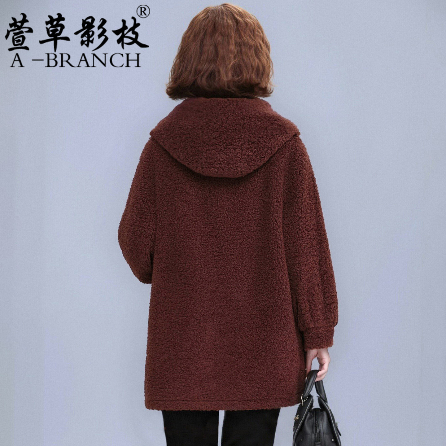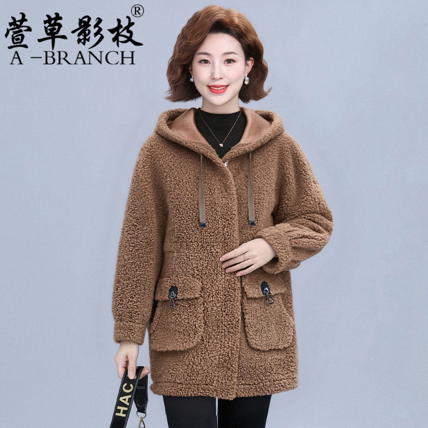 妈妈秋冬加绒加厚连帽外套女中老年人大码时尚宽松颗粒绒保暖上衣