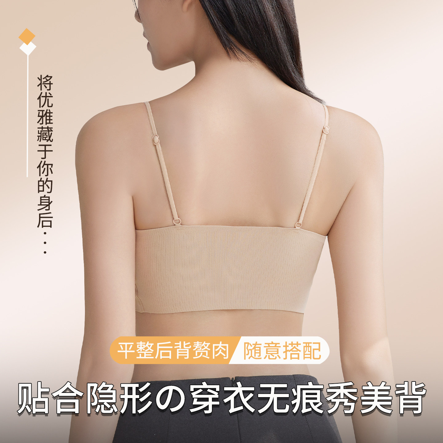 无痕美背抹胸内衣女小胸聚拢可外漏细肩带一体固定杯背心式文胸罩