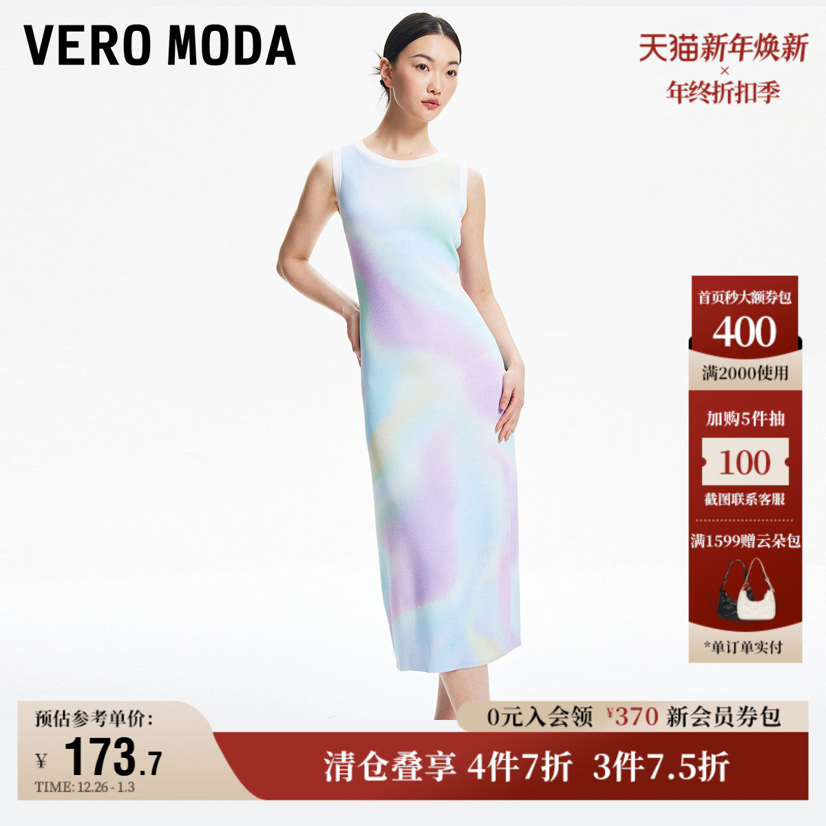 Vero Moda奥莱针织连衣裙秋季新款渐变彩色无袖气质中长裙子流行