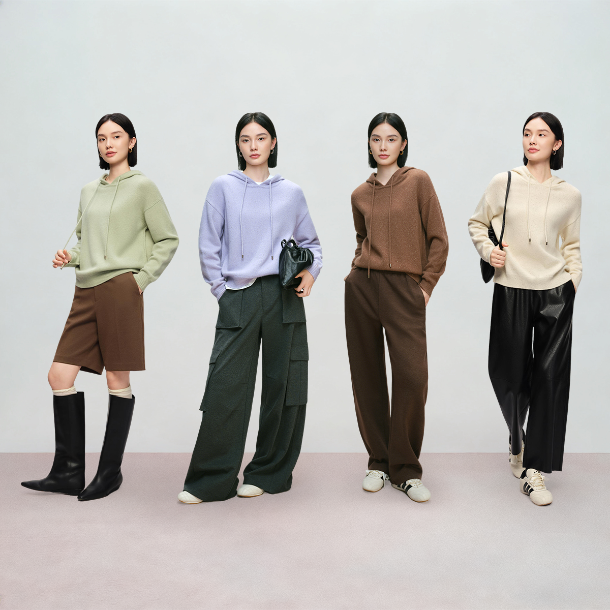 【金豆豆羊毛衫】商场同款naivee纳薇25冬新款慵懒宽松连帽针织衫