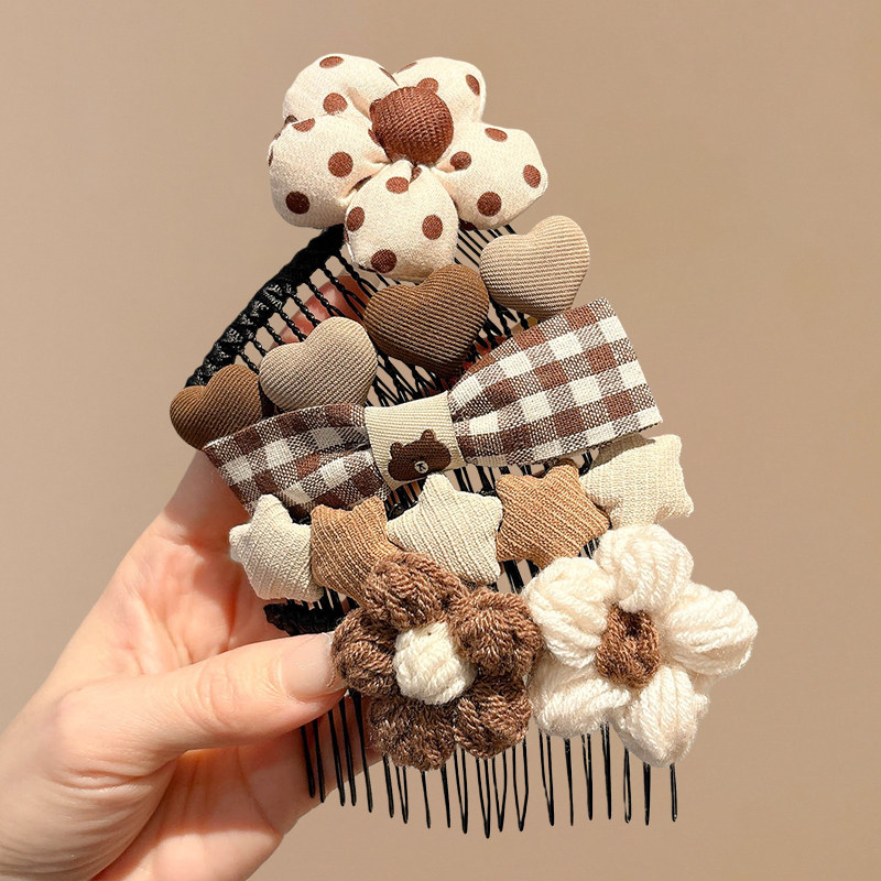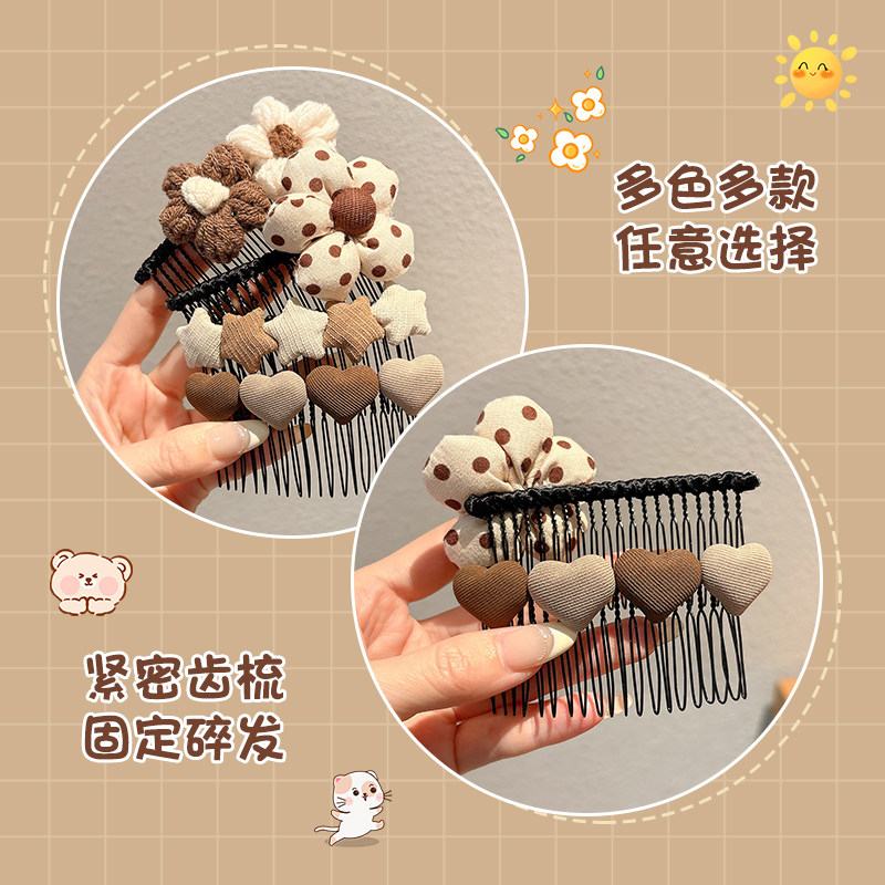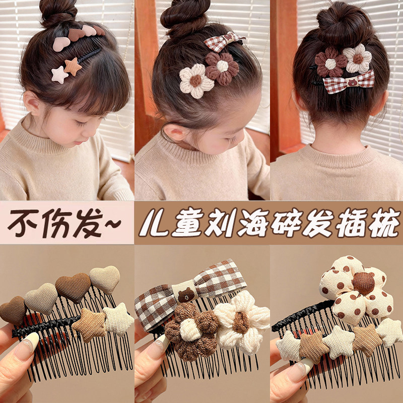 2025新款儿童碎发神器插梳女童前额刘海发夹女孩发饰咖色发梳发卡