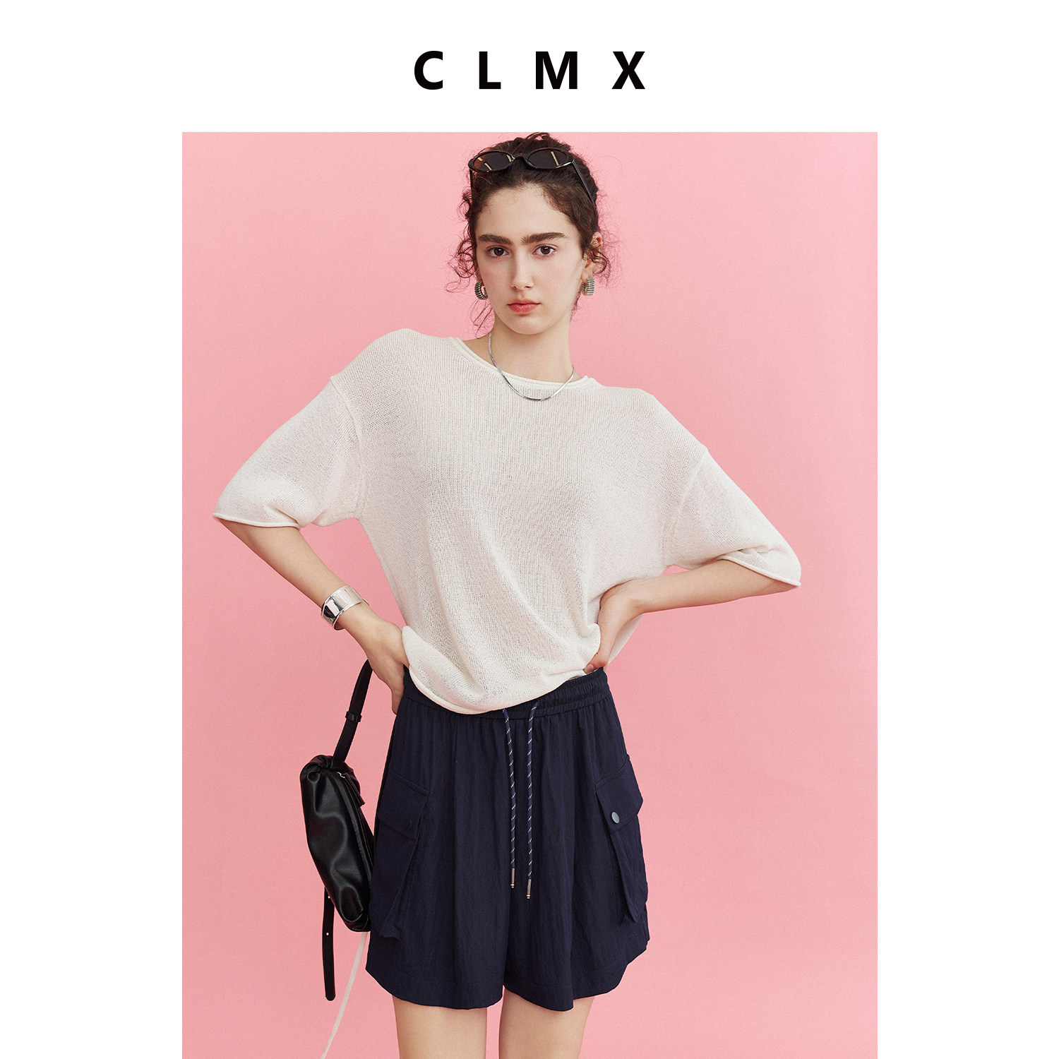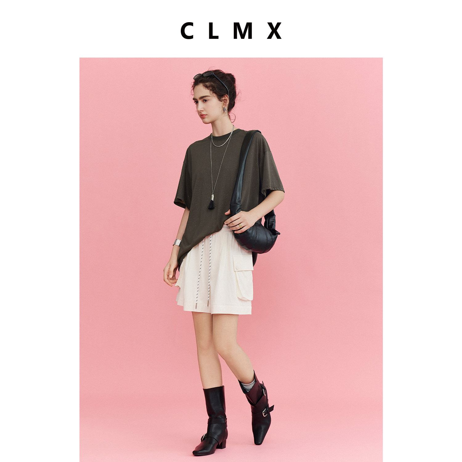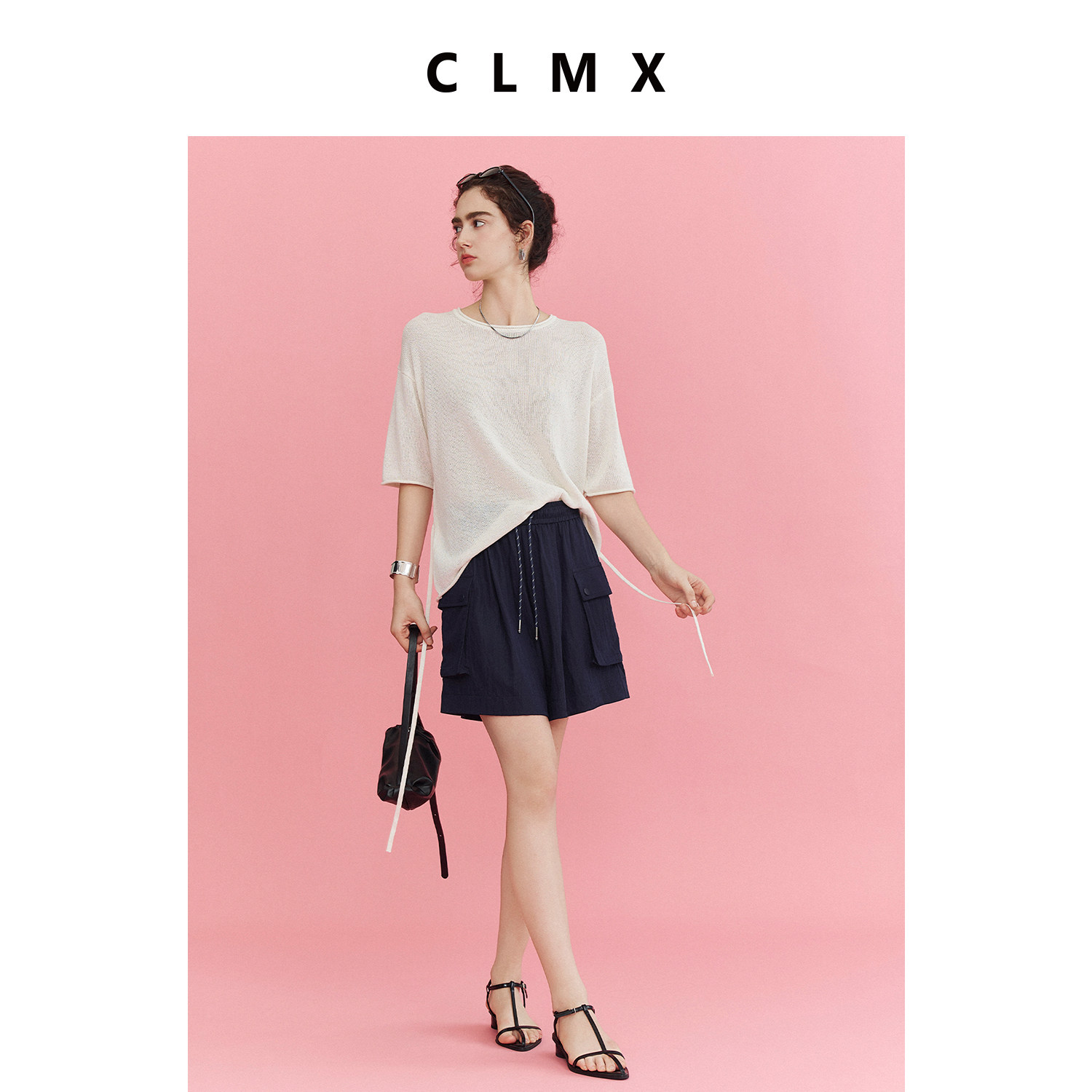 CLMX简约纯色直筒裤子透气粘纤锦纶混纺面料工装风贴袋抽绳短裤女