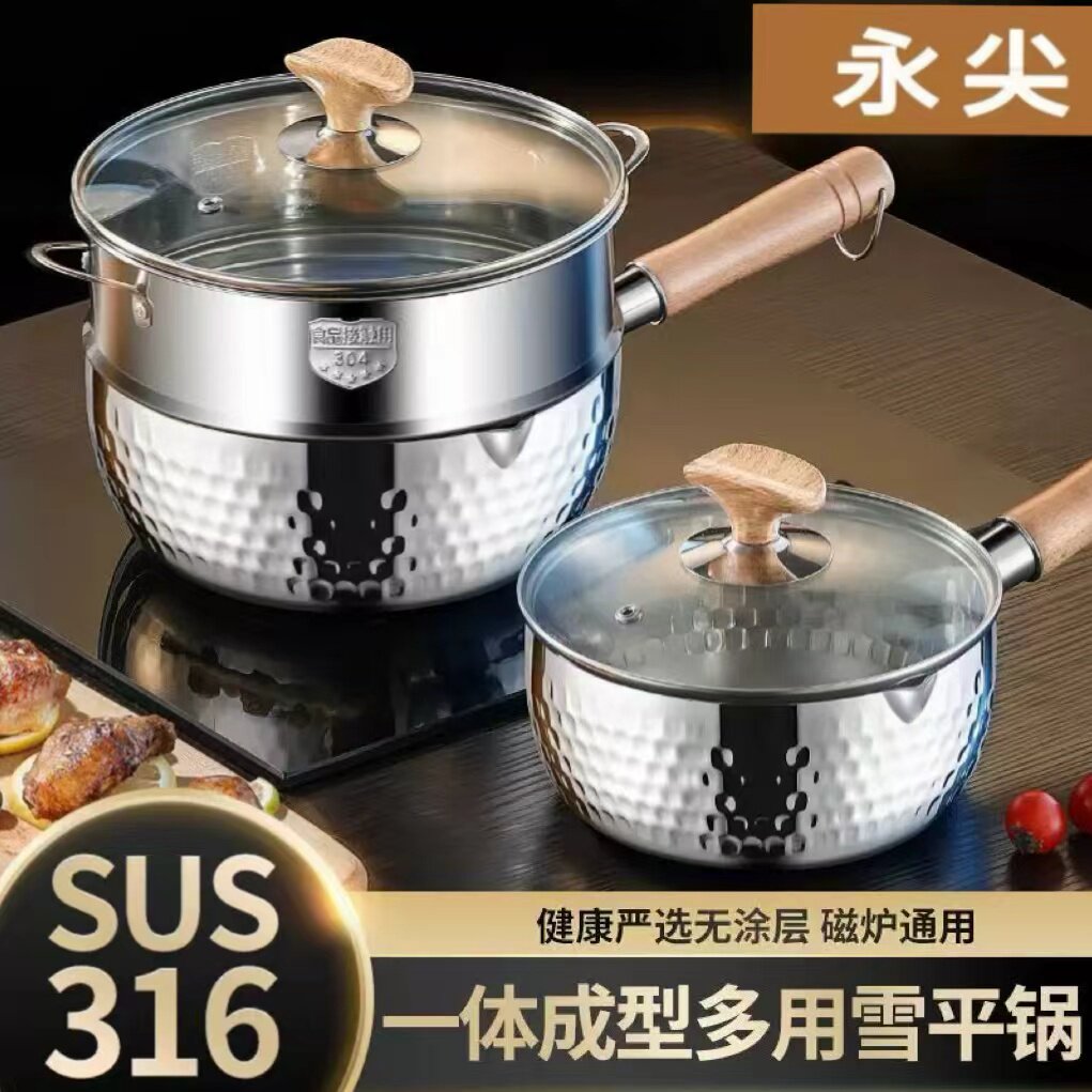 永尖316不锈钢雪平锅家用蒸锅泡面锅奶锅汤锅宝宝辅食电磁炉煮面