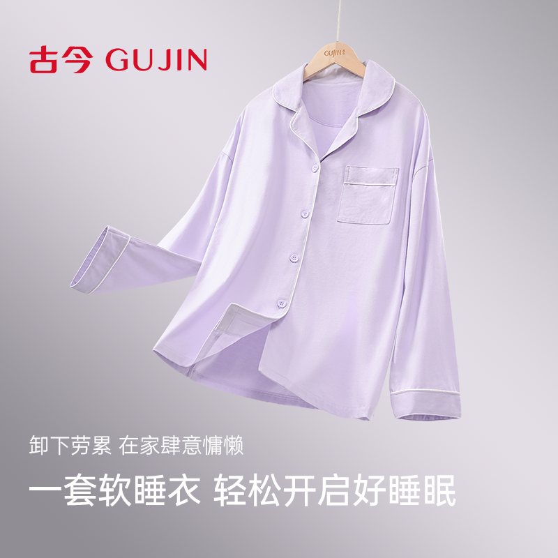 古今100%纯棉男女睡衣翻领开衫长袖长裤可外穿休闲家居服情侣套装