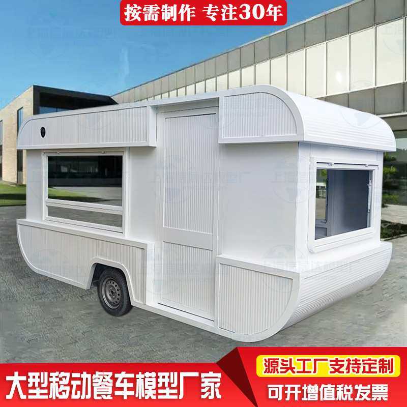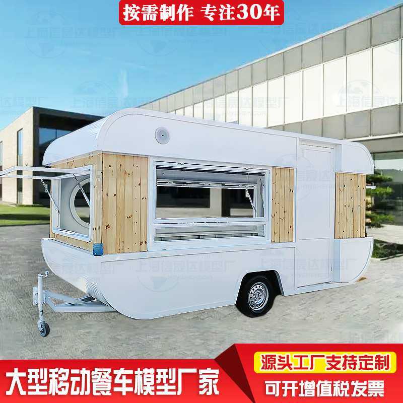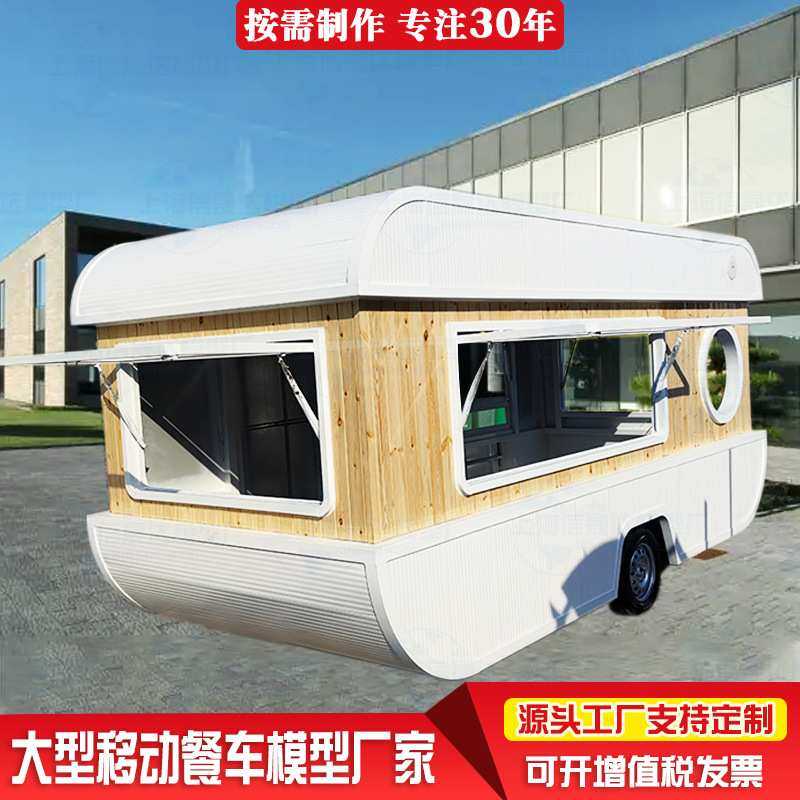 户外活动多功能食品拖车 不锈钢仿木纹复古餐饮车 白色大气美食车
