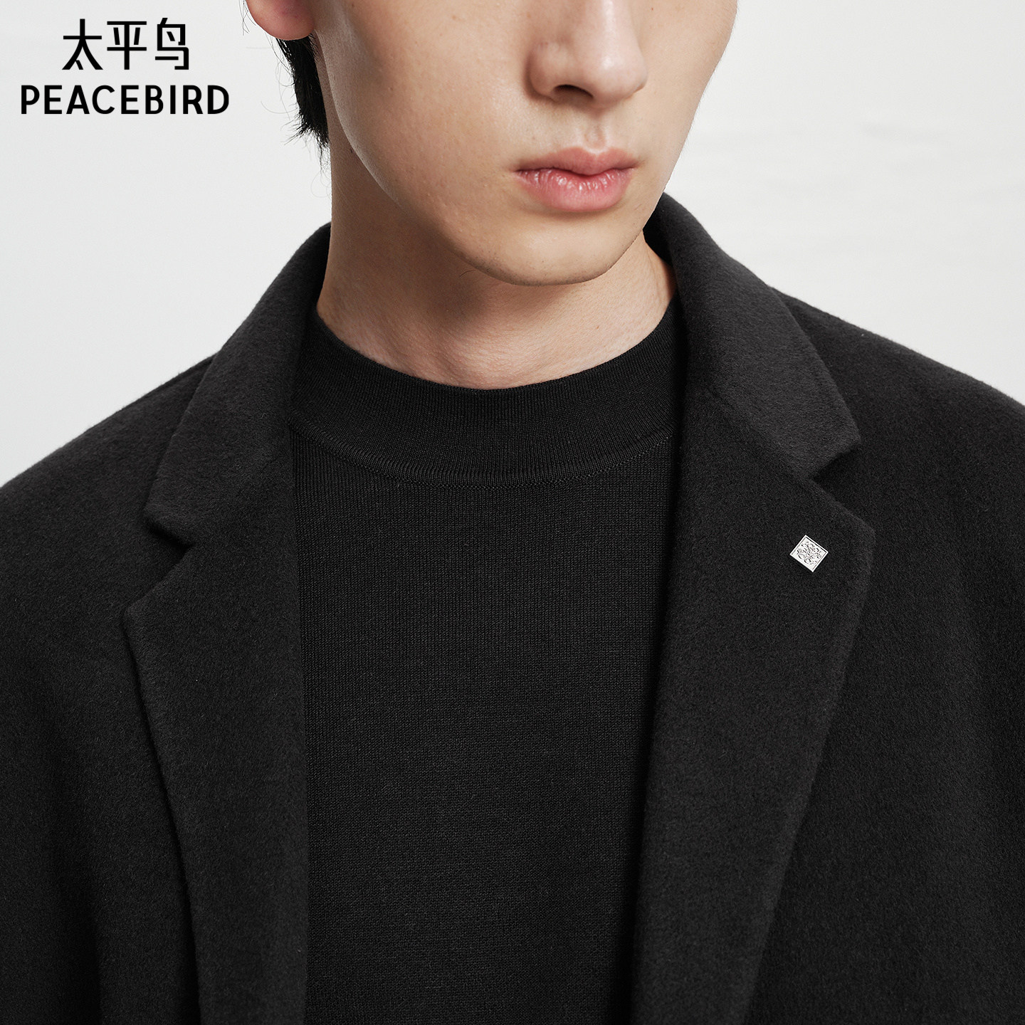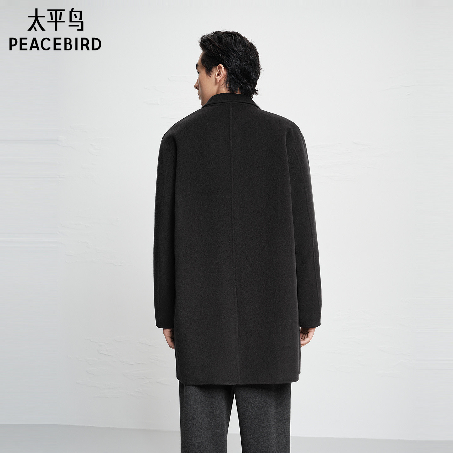 太平鸟男装 冬季休闲时尚宽松男士绵羊毛外套黑色质感毛呢大衣