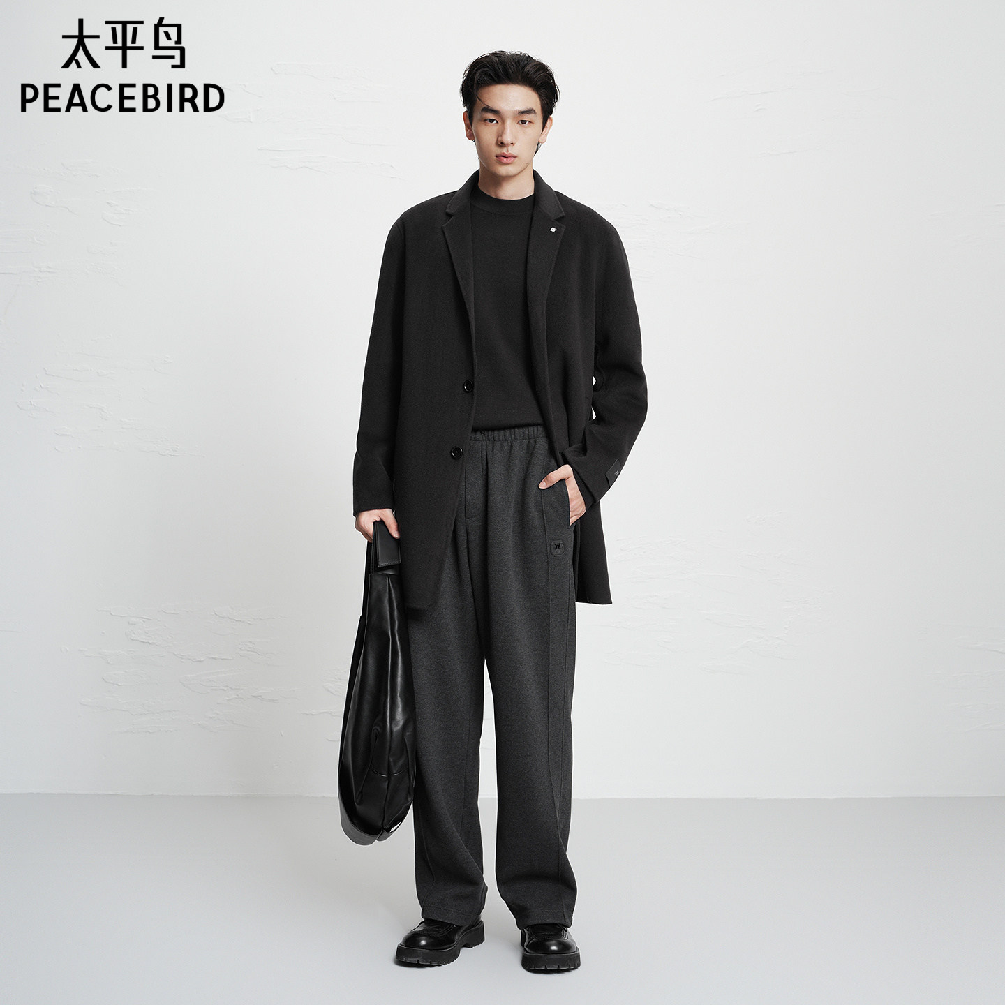 海上公路绵羊毛双面呢大衣男士中长款一粒扣简约休闲秋冬新款外套