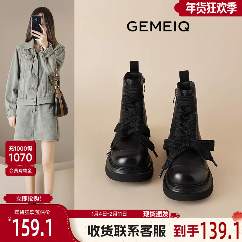 戈美其厚底马丁靴女舒适春秋单靴新款复古炸街机车靴子工装风短靴