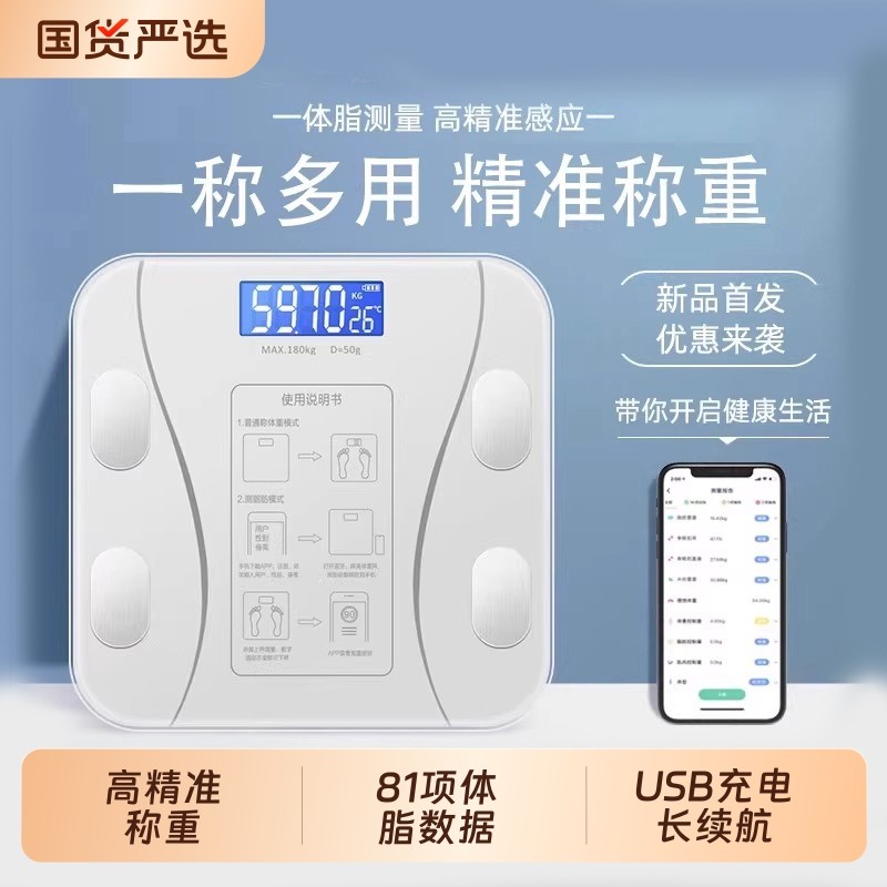 智能体脂秤充电电子称专业称重小型精准耐用人体体重秤家用测脂肪