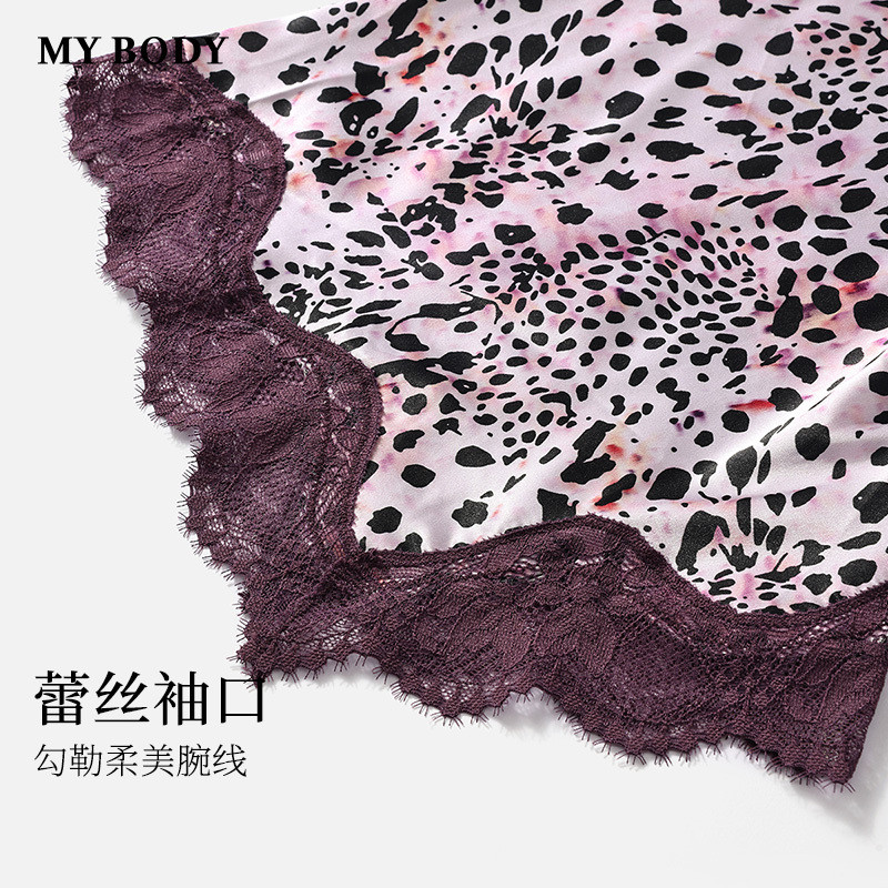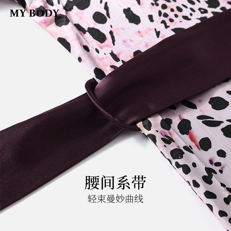 商场同款MYBODY新款性感撩人豹纹印花蕾丝睡衣浴袍吊带两件套睡裙