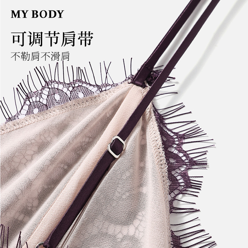 带胸垫性感睡衣女夏2025新款纯欲风冰丝蕾丝吊带裙睡裙高级感套装