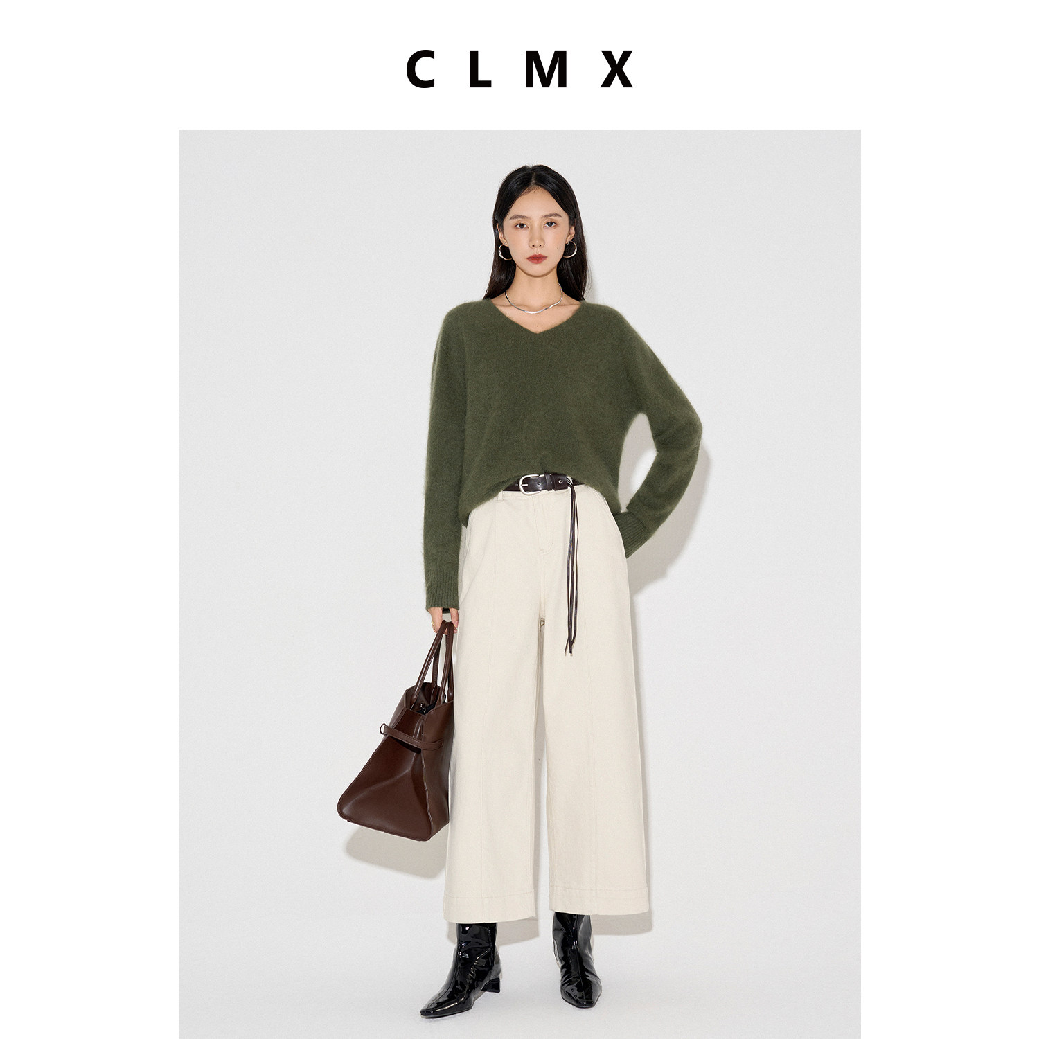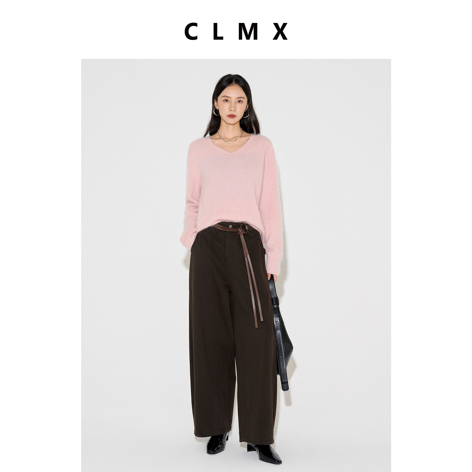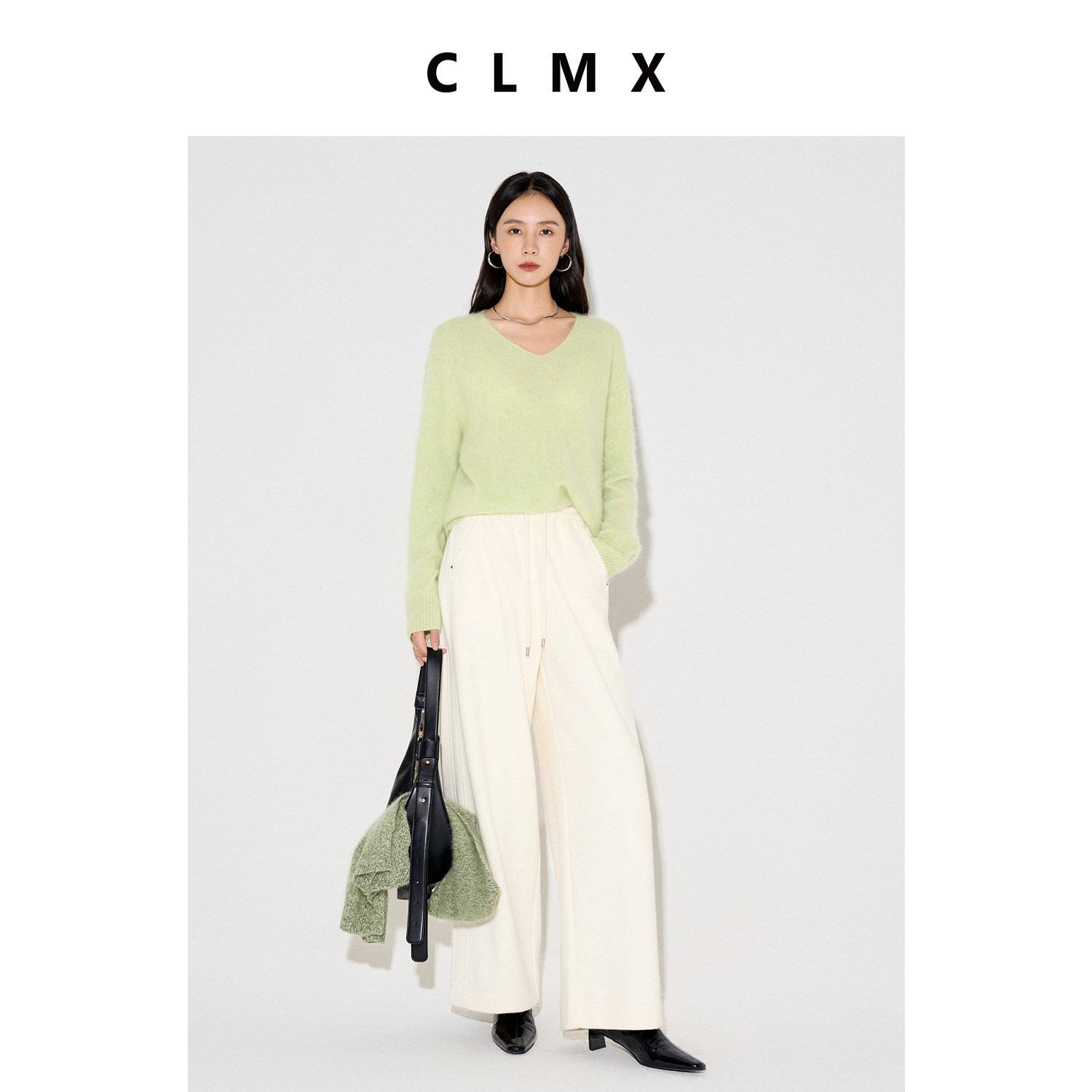 CLMXV领长袖套头针织衫柔绒蓬松保暖山羊绒混纺秋季简约休闲上衣