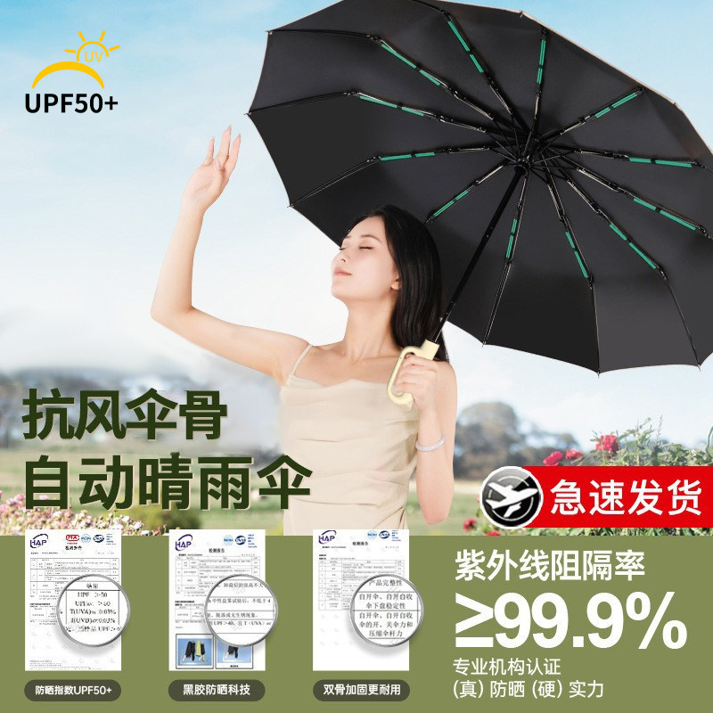 自动雨伞男女折叠太阳伞加大加固晴雨两用防晒防紫外线加厚遮阳伞
