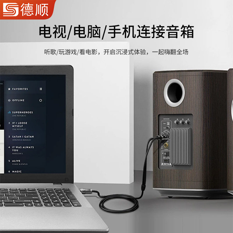 德顺窗口对讲机 原装音频线 3.5公头转双莲花公头 转接线3米